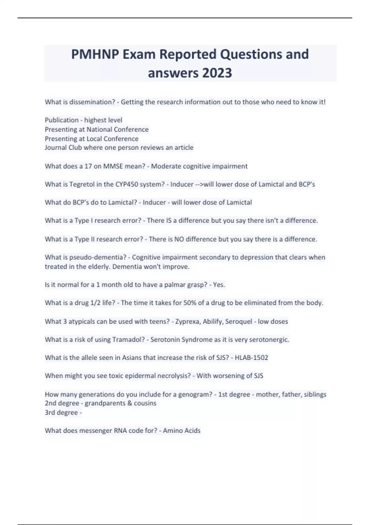 PMHNP Exam Reported Questions and answers 2023