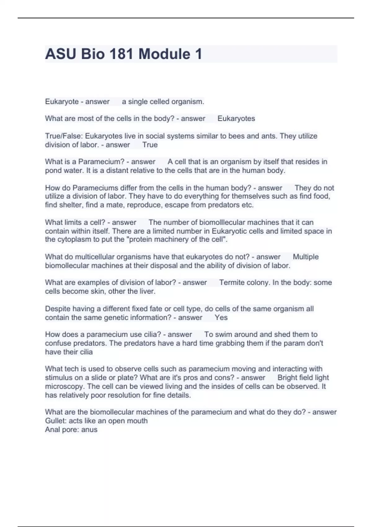 ASU Bio 181 Module 1