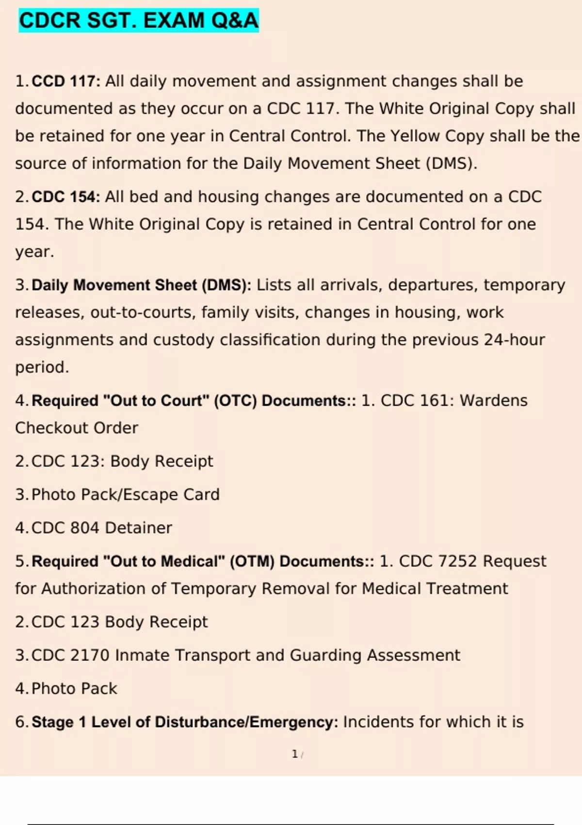 CDCR SGT. EXAM QUESTIONS AND ANSWERS GRADED A+