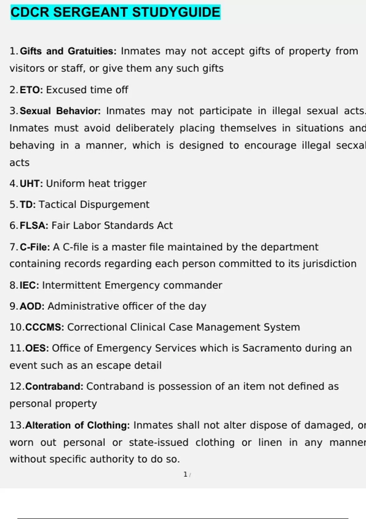 CDCR SERGEANT STUDYGUIDE GRADED A+