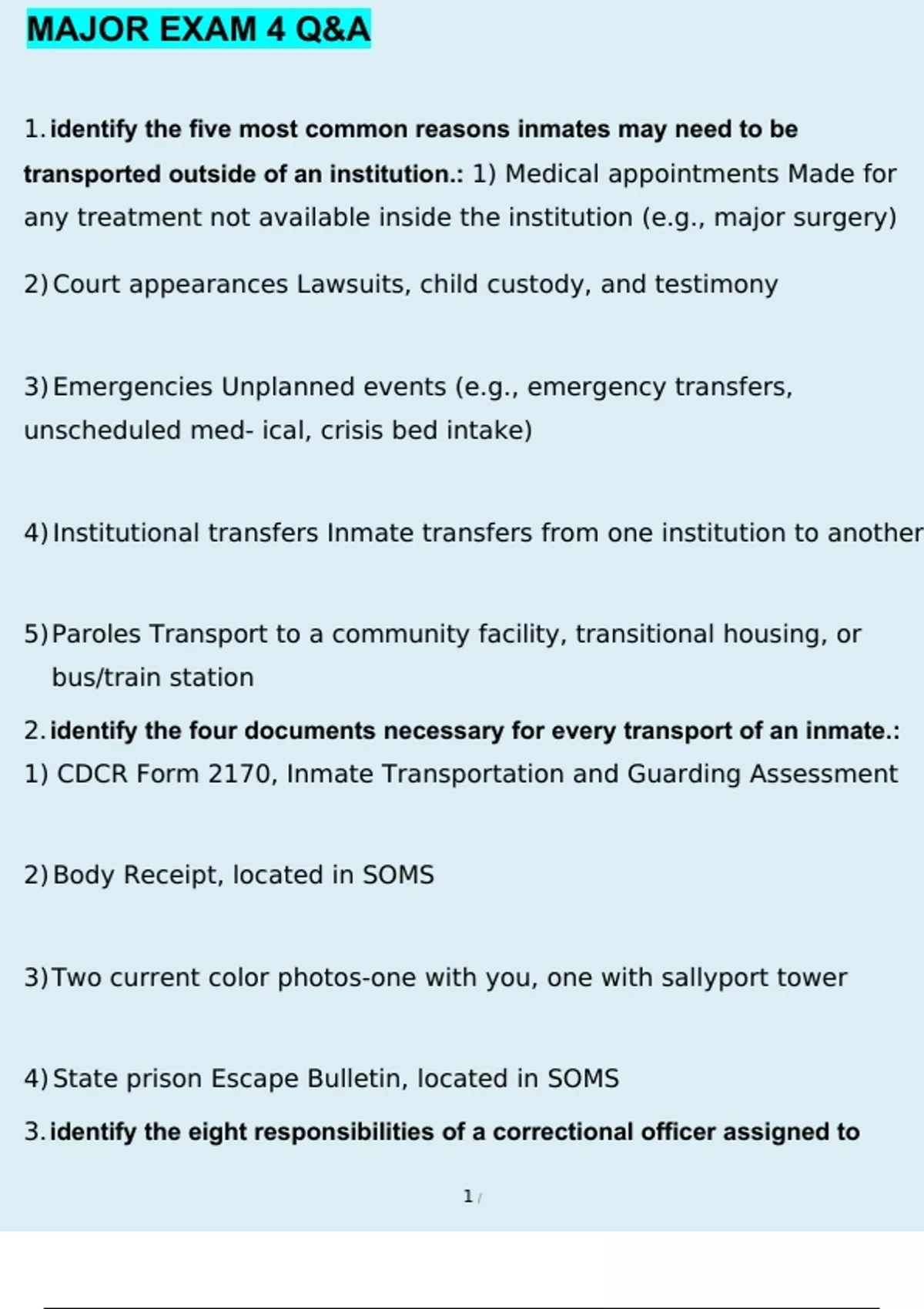 cdcr major exam 4 questions and answers