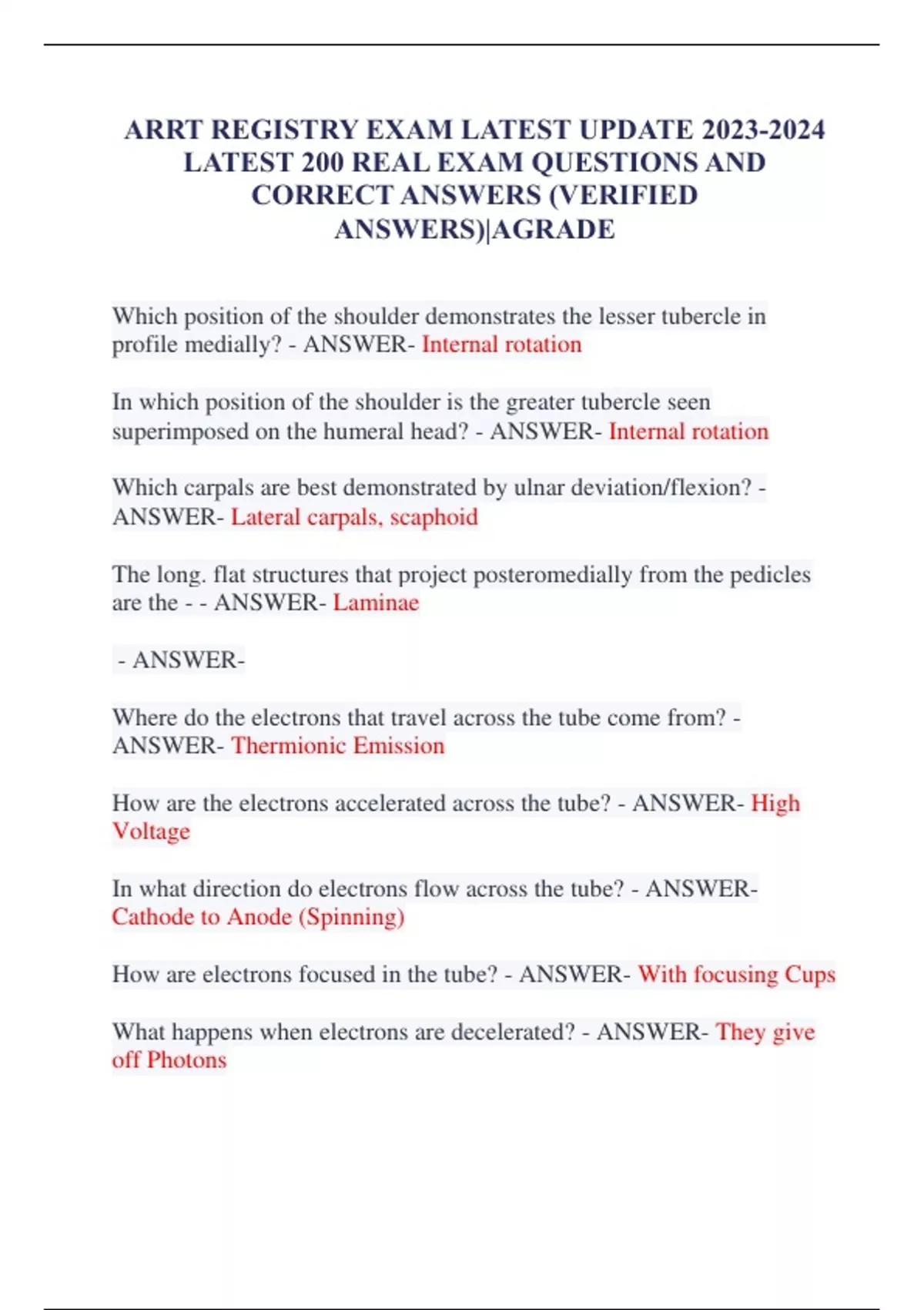 CORRECT ANSWERS (VERIFIED