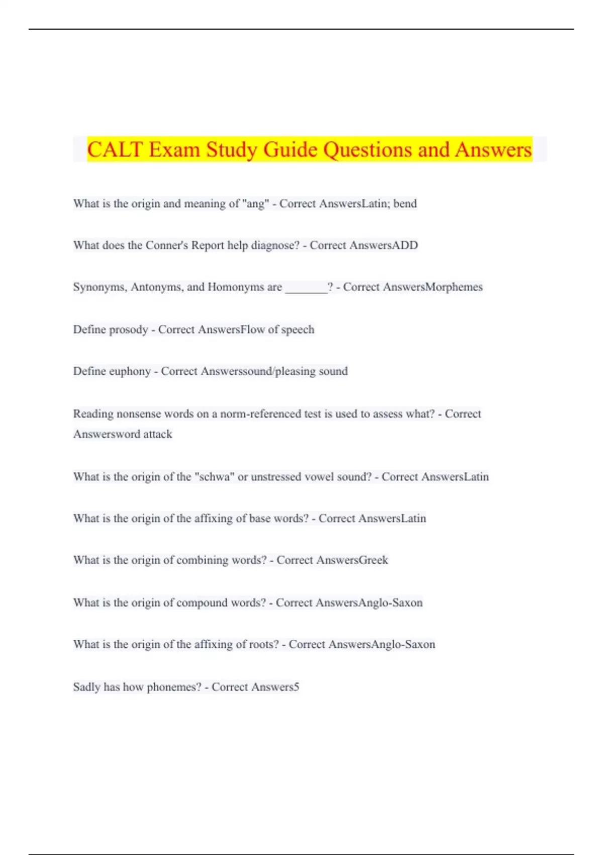 A Bundle of CALT Exams Study Guide | 400+ Questions | 100% Correct Answers