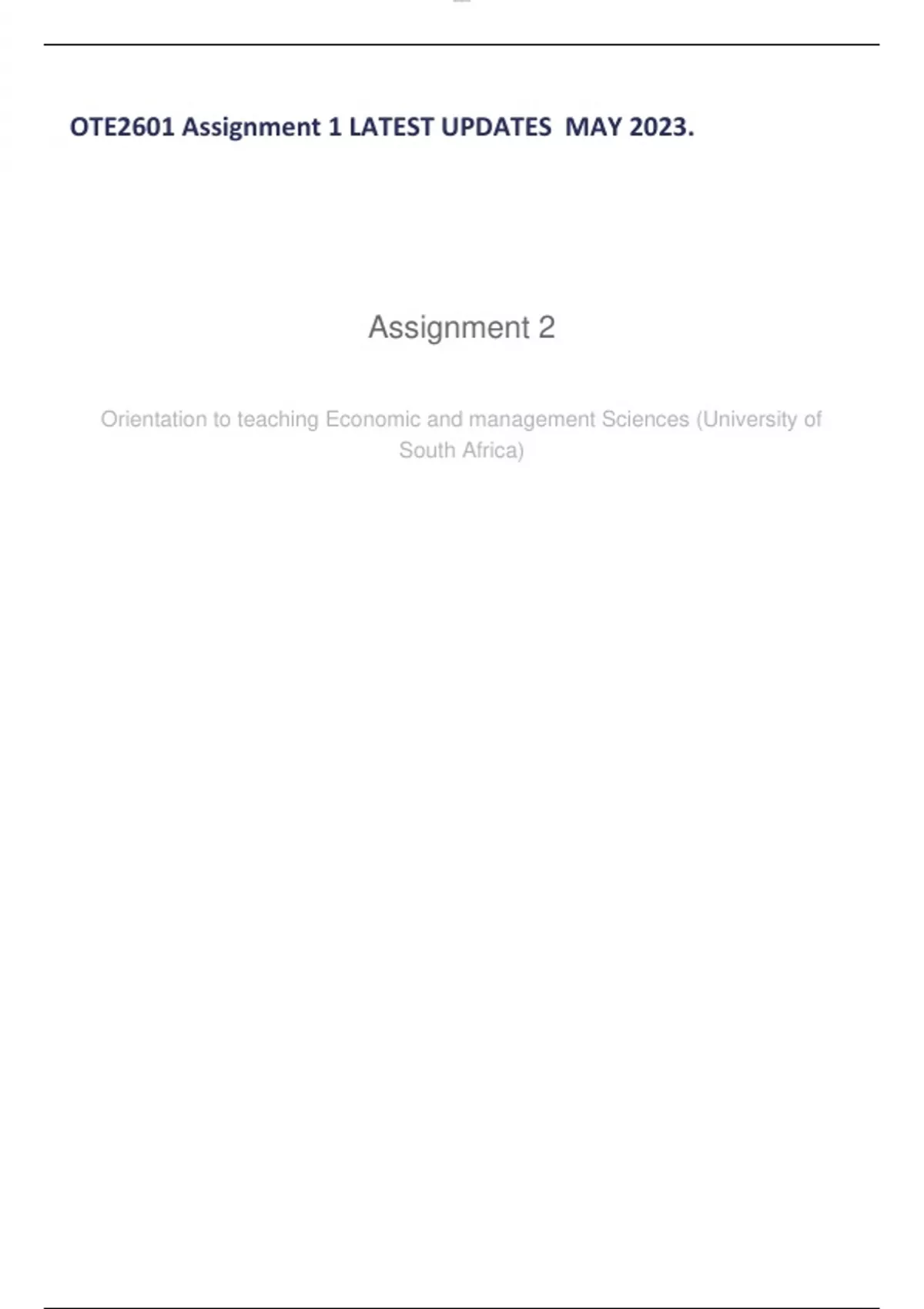 OTE2601 Assignment 1 LATEST UPDATES MAY 2023.