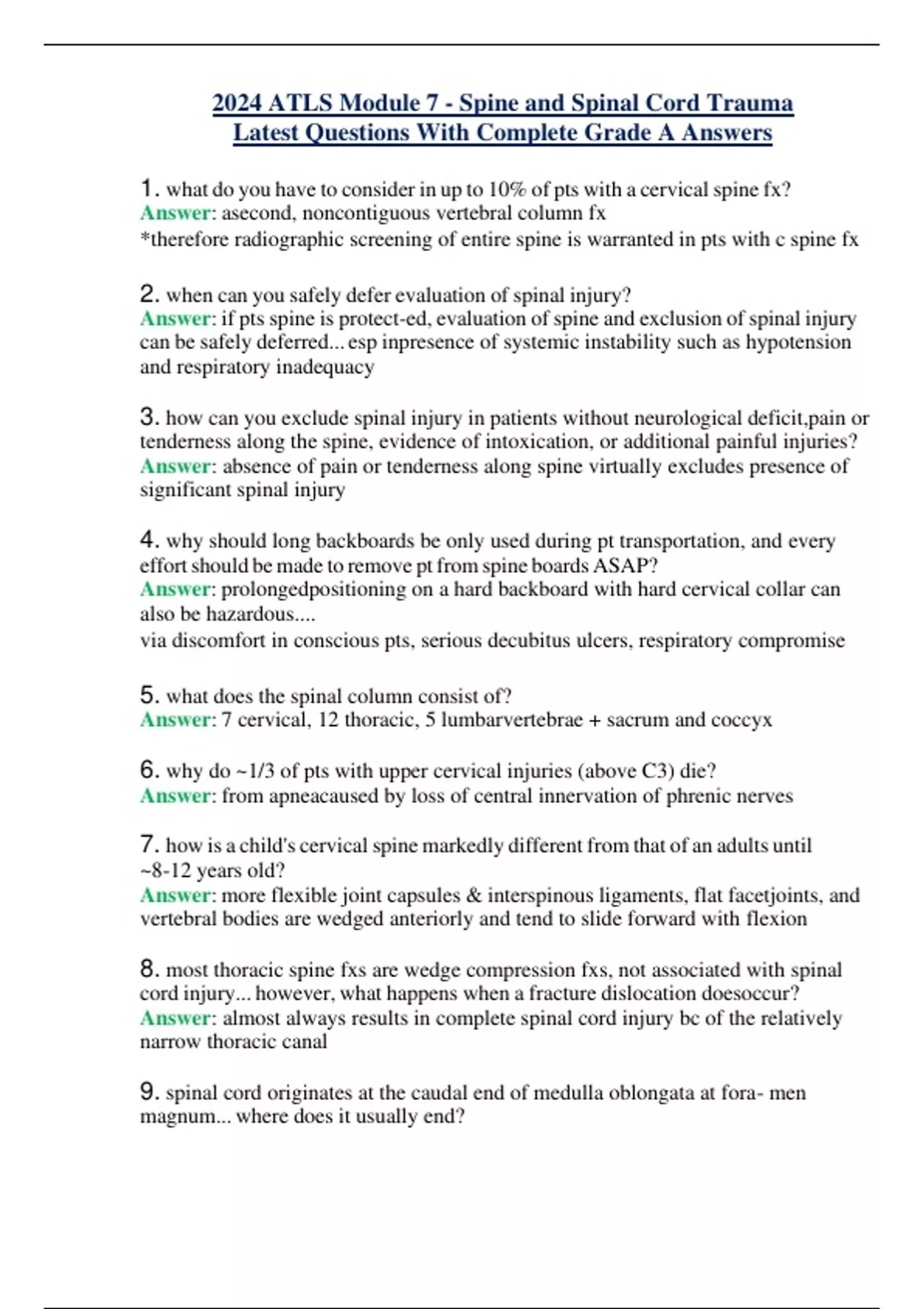 2024 ATLS Module 7 - Spine and Spinal Cord Trauma Latest Questions With Complete Grade A Answers