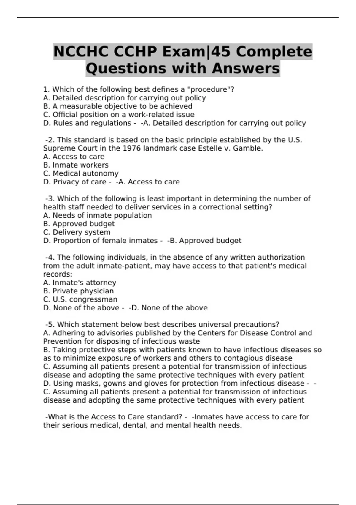 NCCHC CCHP Exam|45 Complete