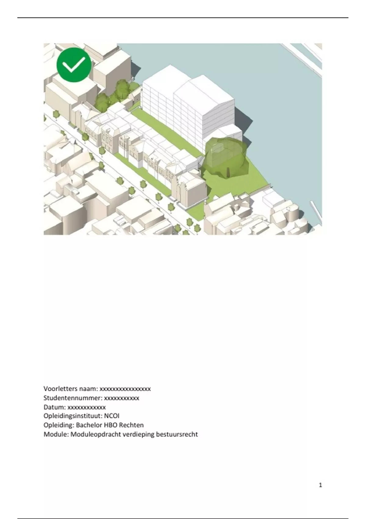 De moduleopdracht bestaat uit een onderzoek over een bouwplan van een onderneming, stichting, particulier of vereniging (geen overheidsorganisatie). Dit mag een bouwplan of een herontwikkeling in uw eigen gemeente zijn of elders in Nederland. Je werkt dit onderzoek uit in de vorm van een onderzoeksrapport, dat gericht is aan de organisatie die het bouwplan of de herontwikkeling wil realiseren.