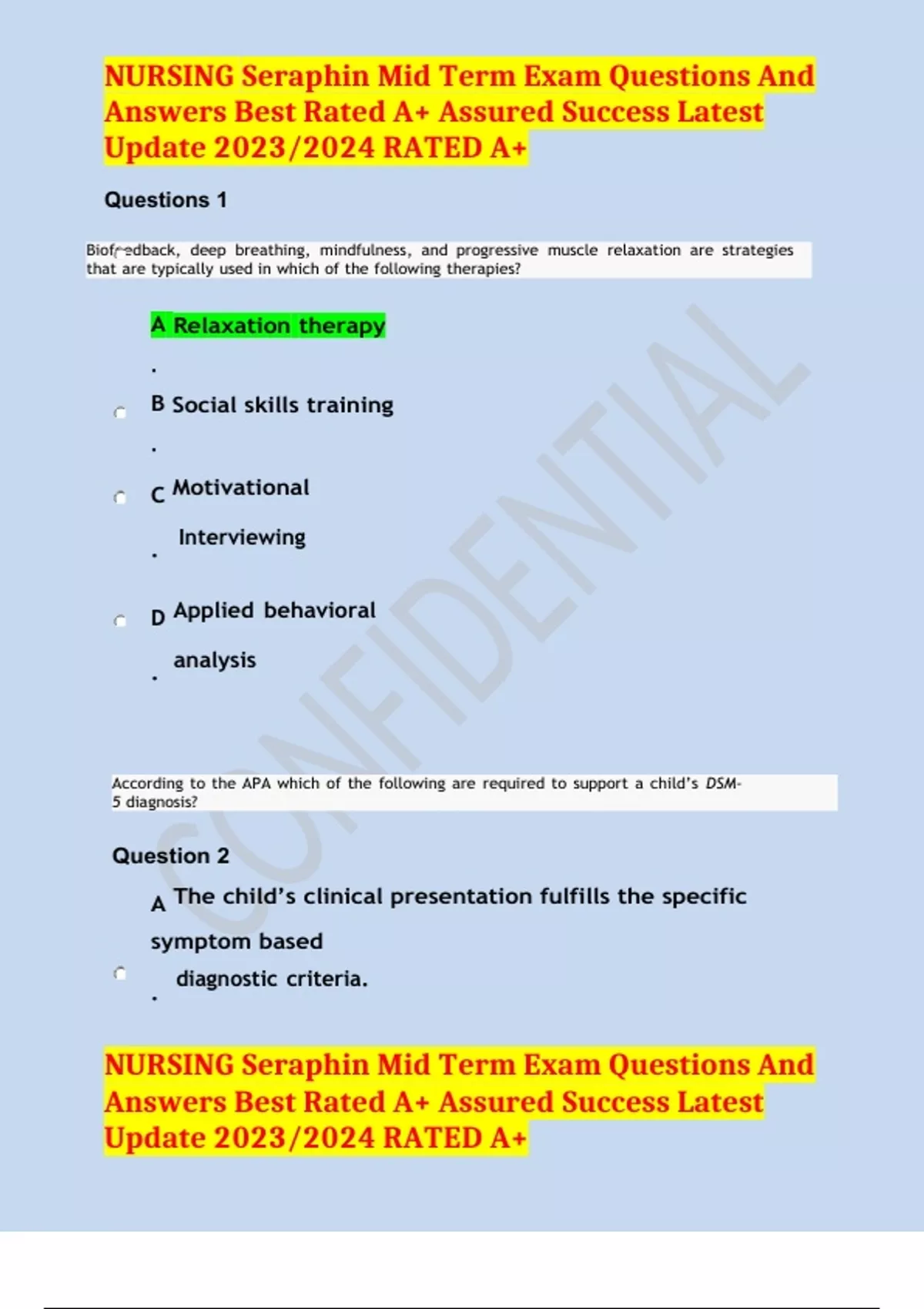 NURSING Seraphin Mid Term Exam Questions And Answers Best Rated A+ Assured Success Latest Update 2023/2024 RATED A+