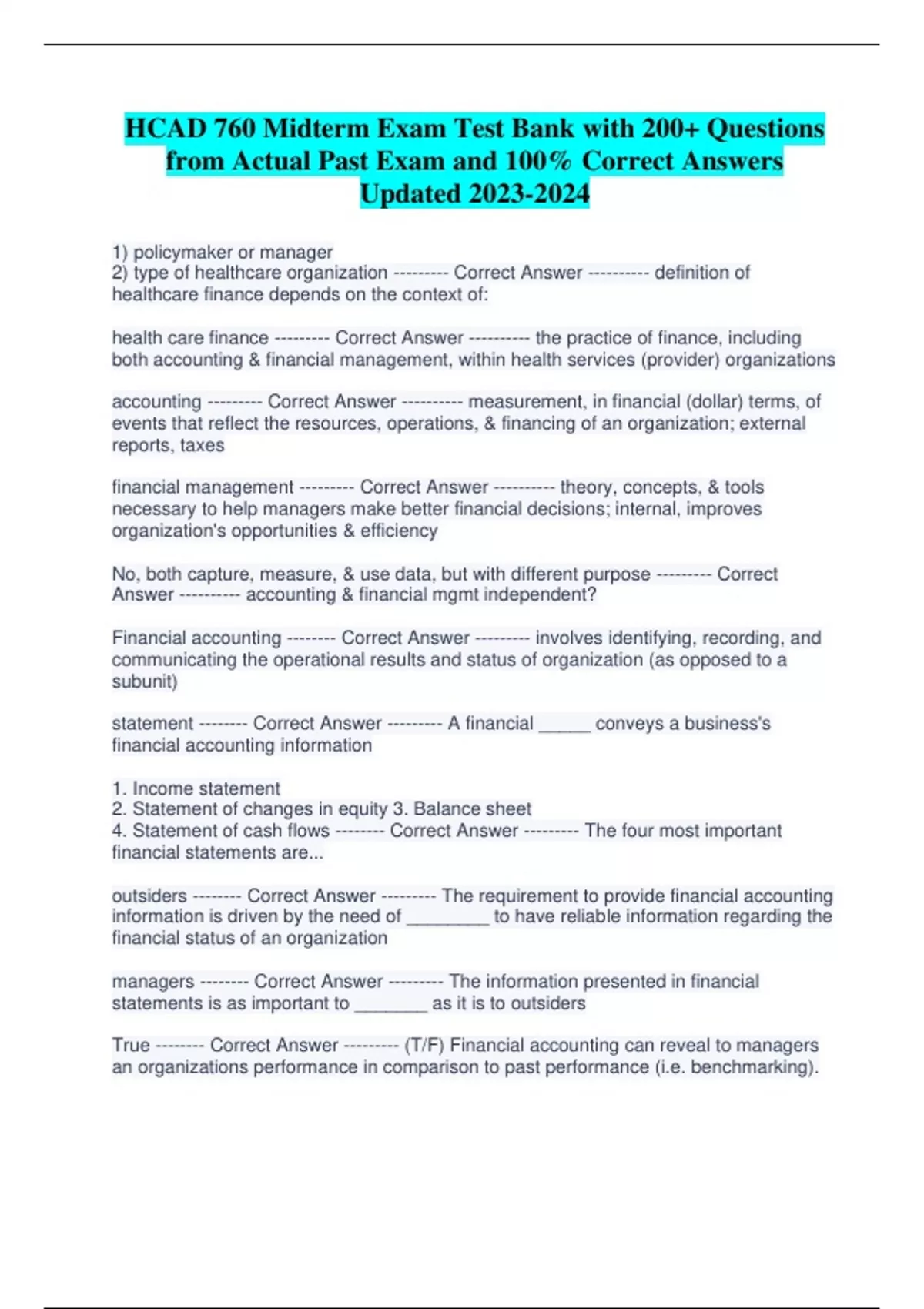 HCAD 760 Midterm Exam Test Bank with 200+ Questions from Actual Past Exam and 100% Correct Answers Updated