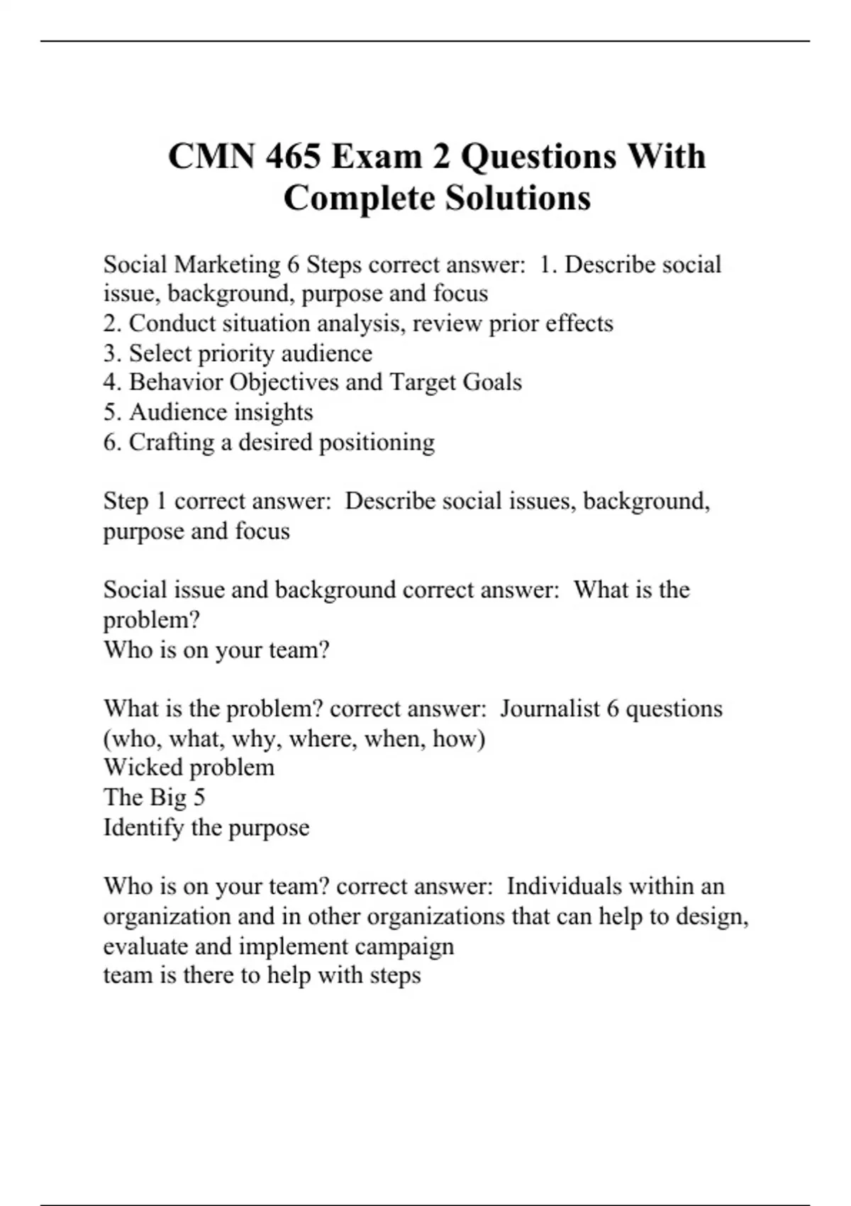 CMN 465 Exam 2 Questions With Complete Solutions