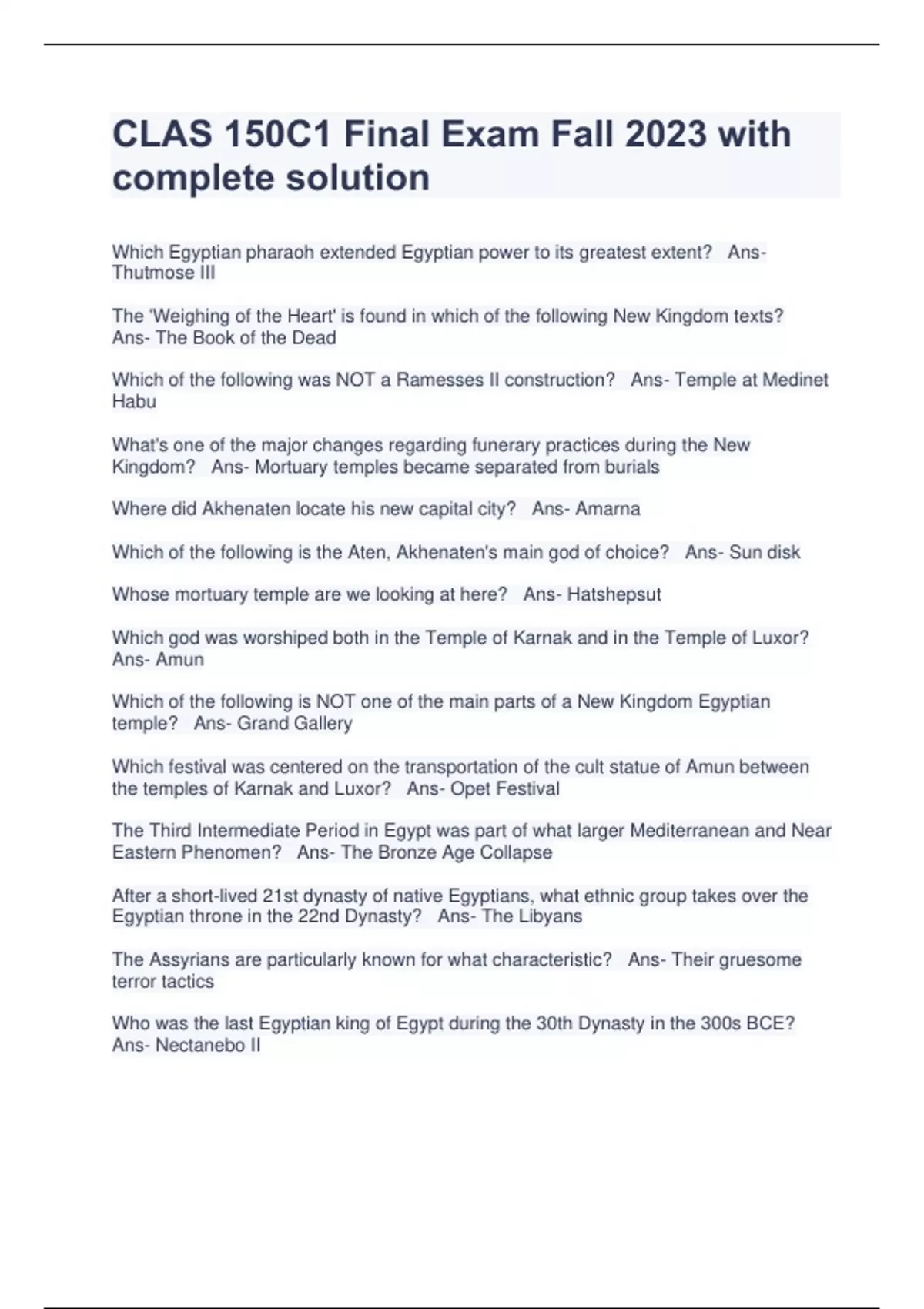 CLAS 150C1 Final Exam Fall 2023 with complete solution