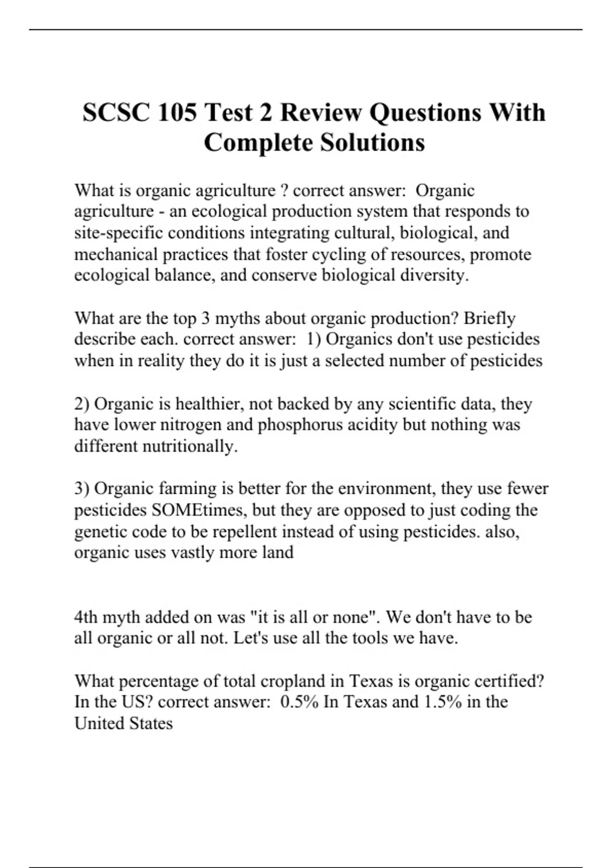 SCSC 105 Test 2 Review Questions With Complete Solutions