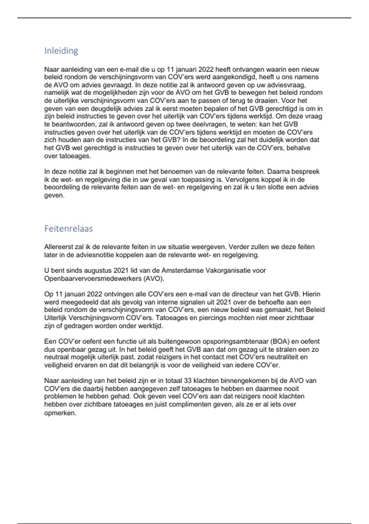 In deze notitie zal ik beginnen met het benoemen van de relevante feiten. Daarna bespreek