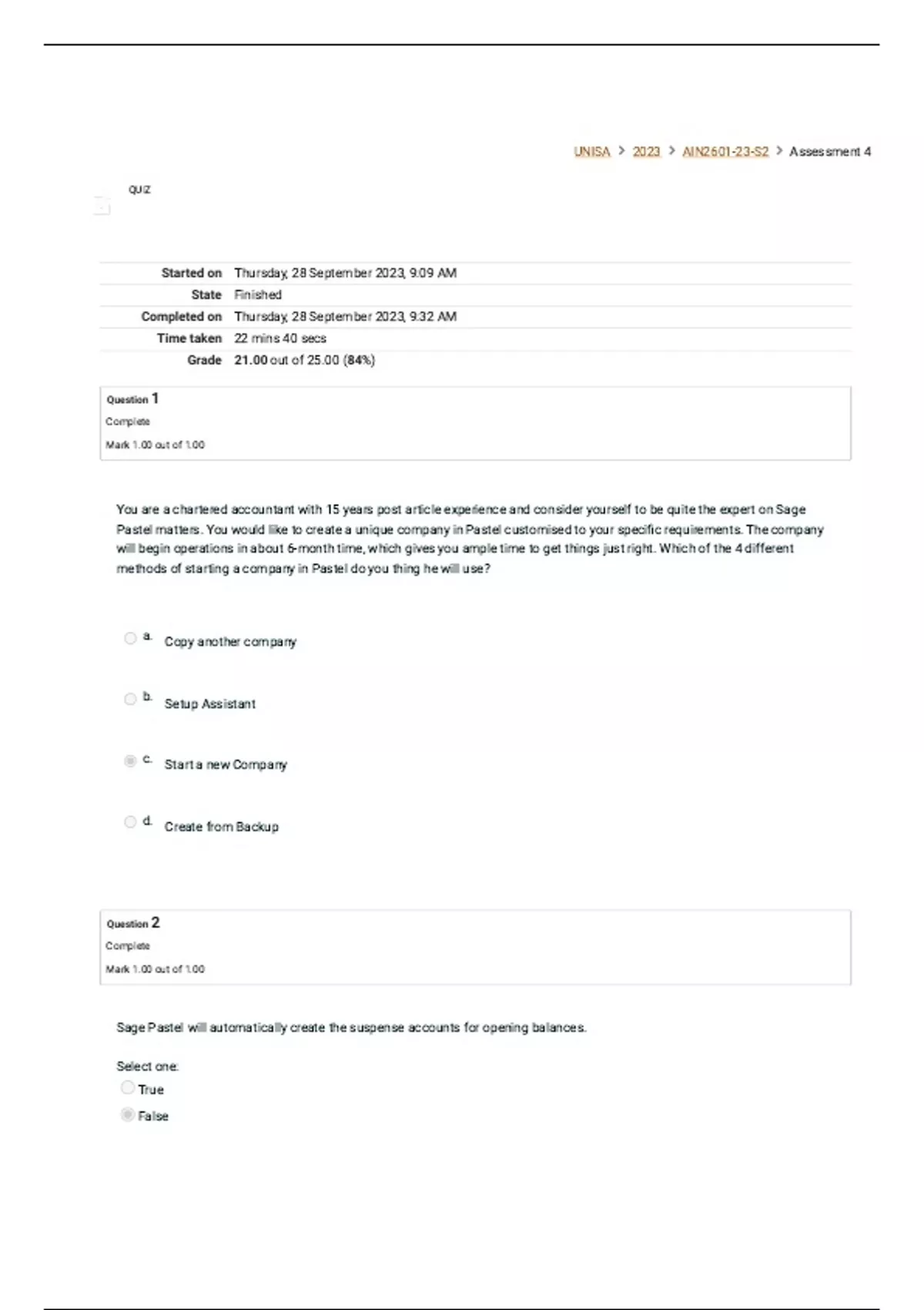 Grade 21.00 out of 25.00 (84%)