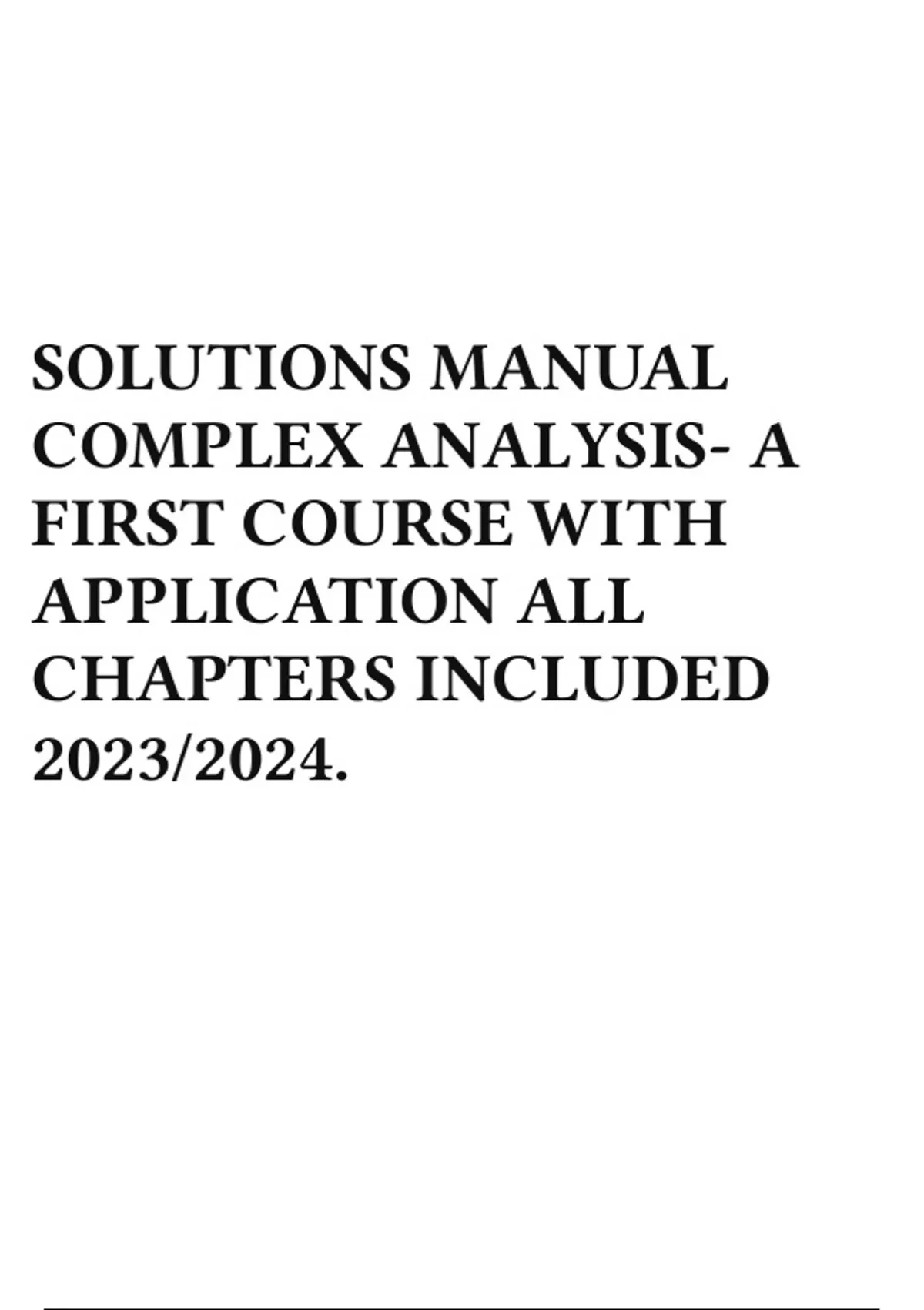 SOLUTIONS MANUAL COMPLEX ANALYSIS- A FIRST COURSE WITH APPLICATION ALL CHAPTERS INCLUDED 2023/2024.