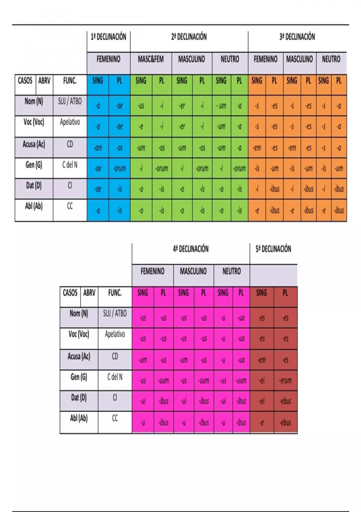 Gen (G) C del N -ae -arum -i -orum -i -orum -i -orum -is -um -is -um -is -um