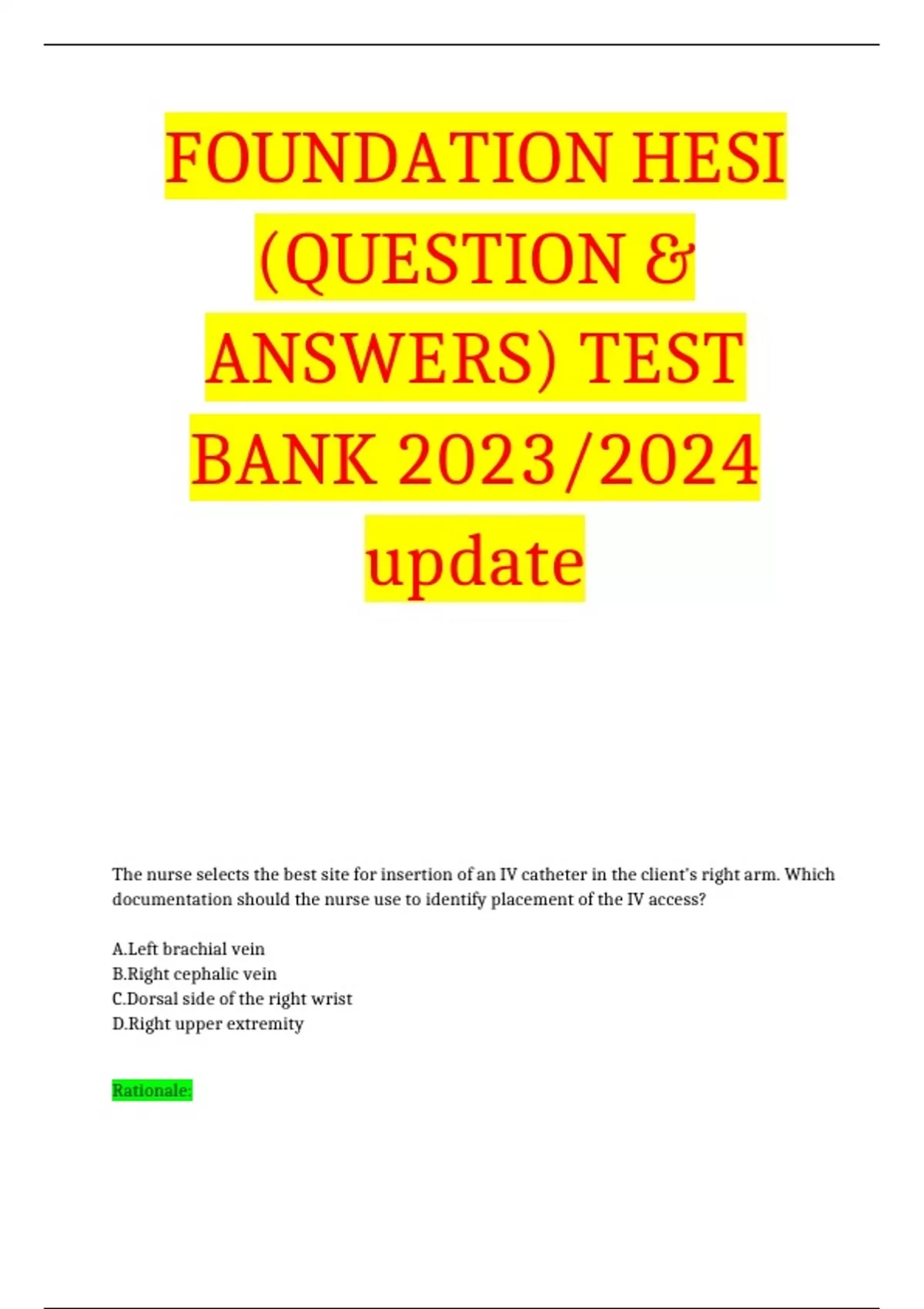 FOUNDATION HESI (QUESTION & ANSWERS) TEST BANK 2023/2024 update