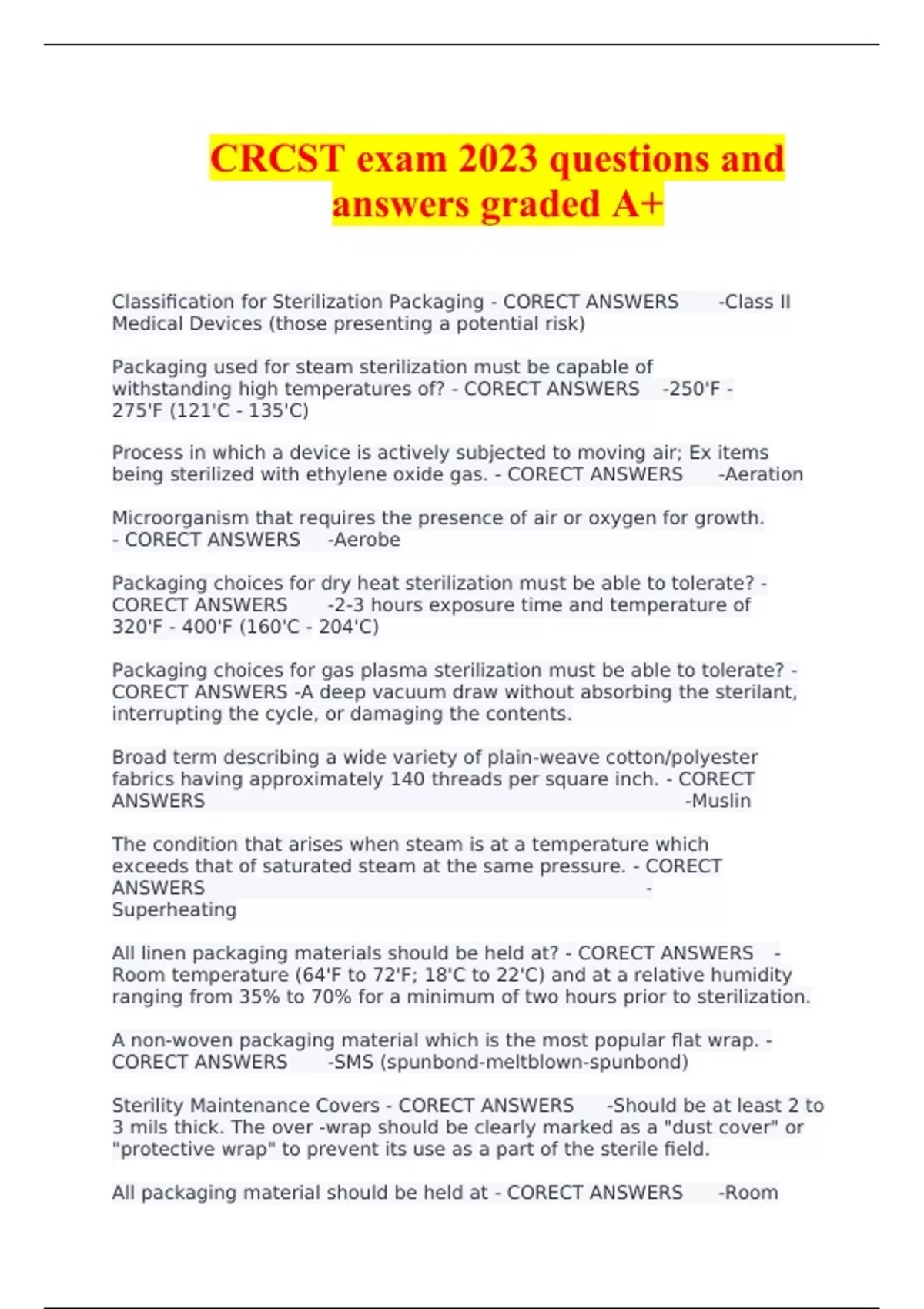 crcst exam 2023 questions and answers graded a