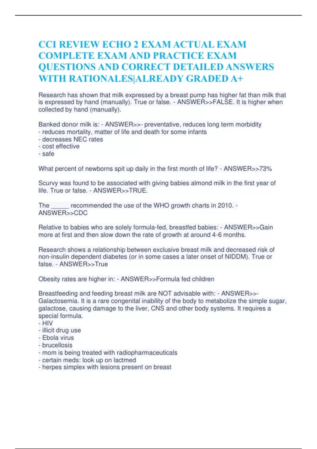 CCI REVIEW ECHO 2 EXAM ACTUAL EXAM COMPLETE EXAM AND PRACTICE EXAM
