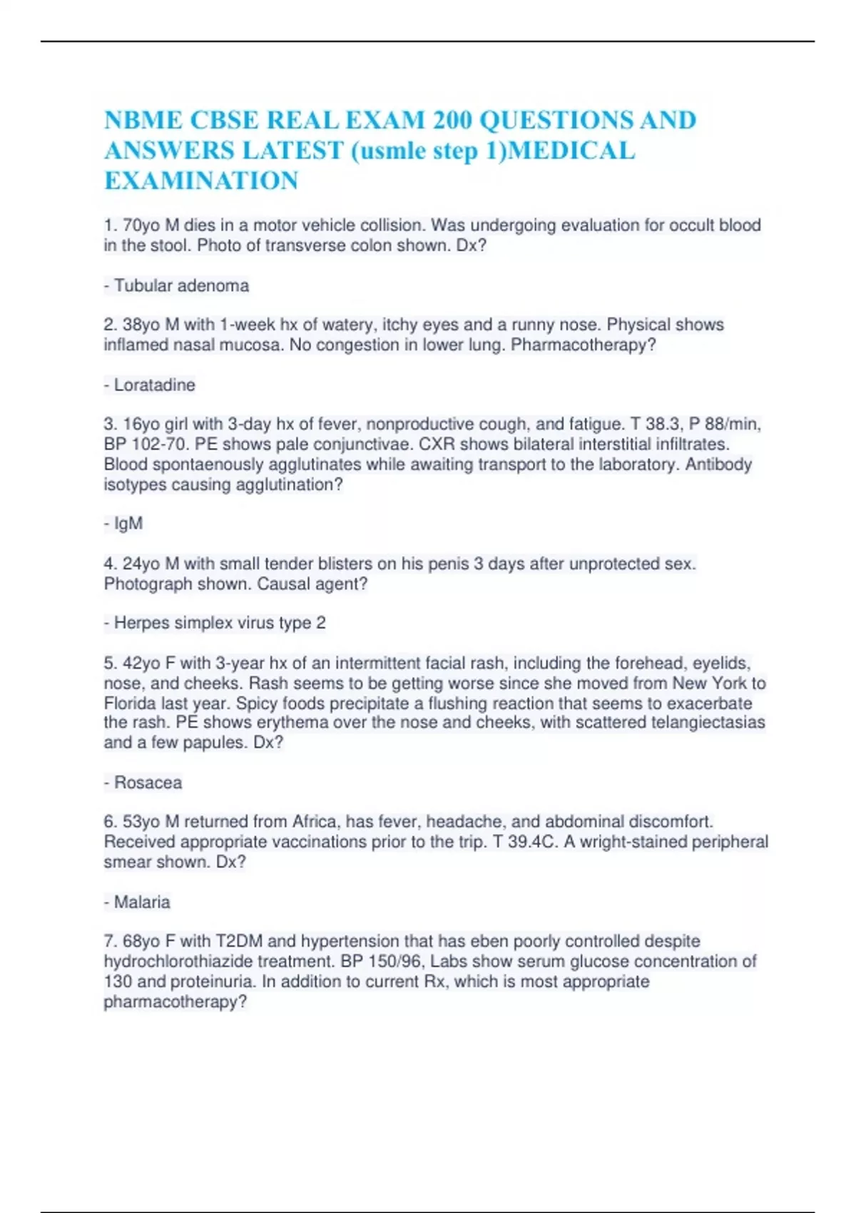 NBME CBSE REAL EXAM 200 QUESTIONS AND ANSWERS LATEST