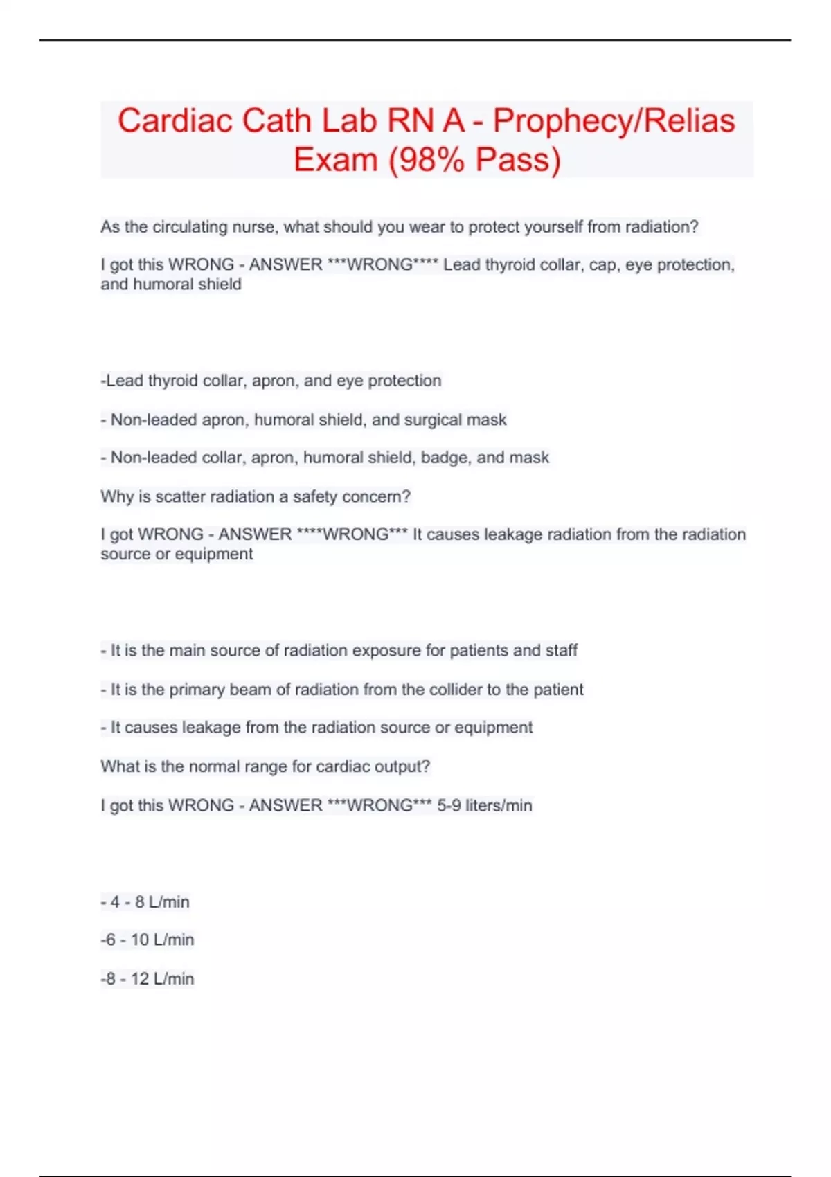 cardiac cath lab rn a prophecyrelias exam 98