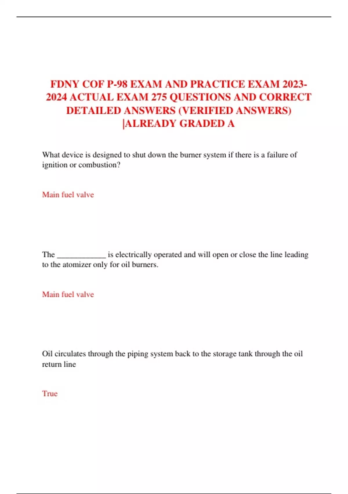 FDNY COF P-98 EXAM AND PRACTICE EXAM ACTUAL EXAM 275 QUESTIONS AND CORRECT DETAILED ANSWERS (VERIFIED ANSWERS) |ALREADY GRADED A