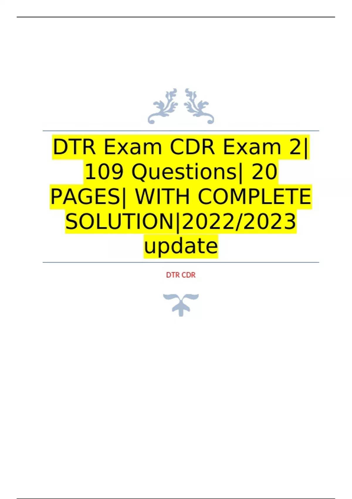 DTR Exam CDR Exam 2| 109 Questions| 20 PAGES| WITH COMPLETE SOLUTION|2022/2023 update