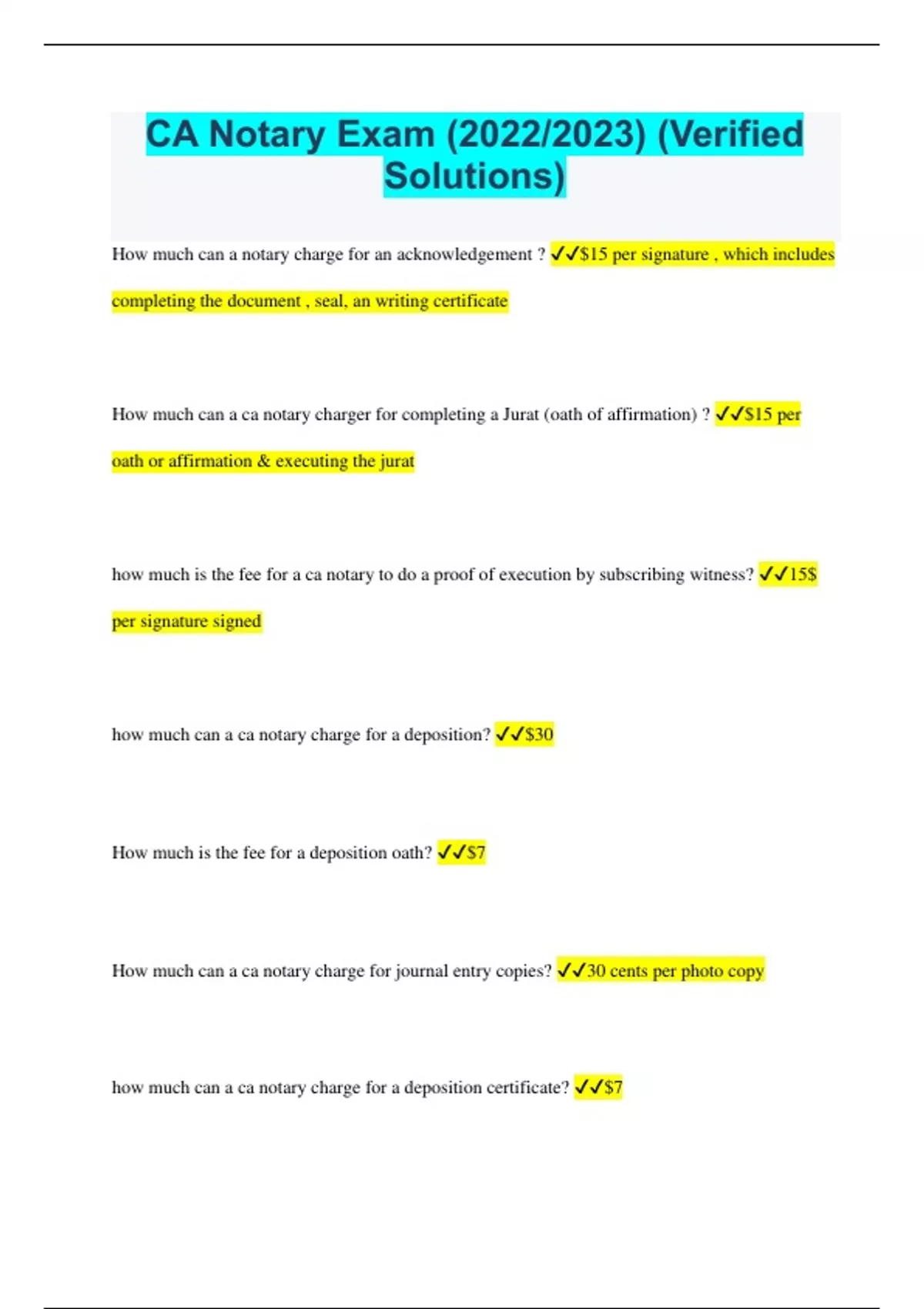 CA Notary Exam (2023/2024) (Verified Solutions)
