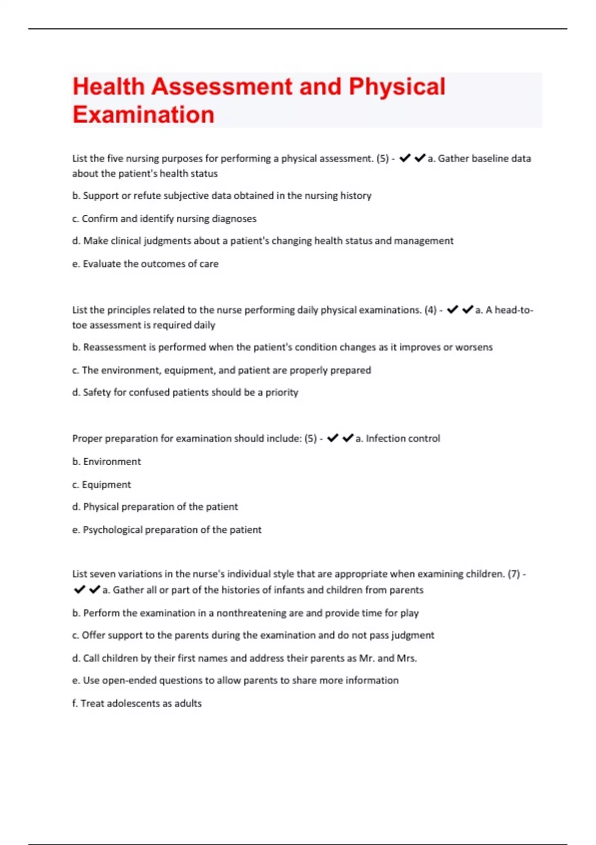 Health Assessment and Physical Examination Questions And Answers Already Graded A+