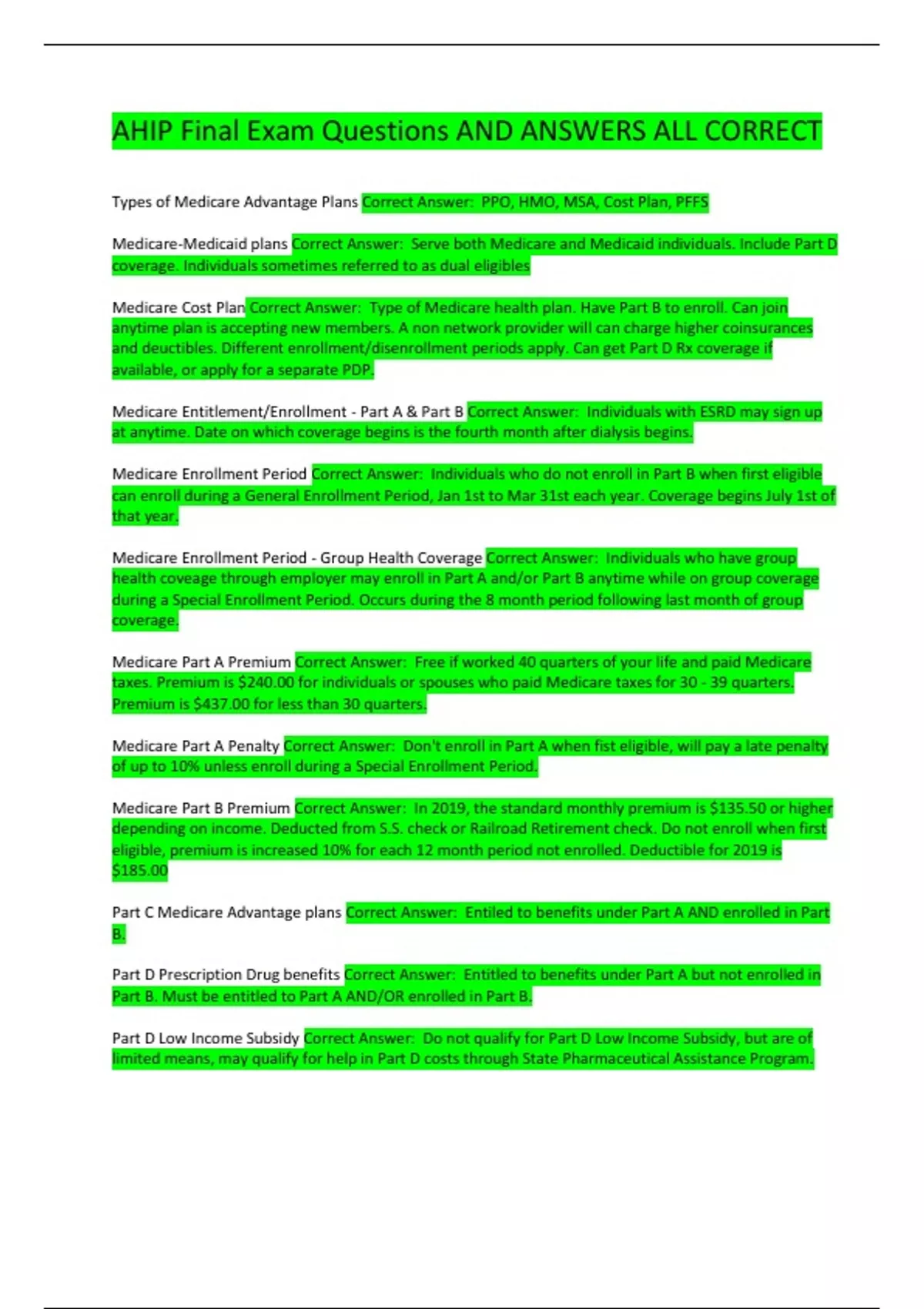 AHIP Final Exam Questions AND ANSWERS ALL CORREC