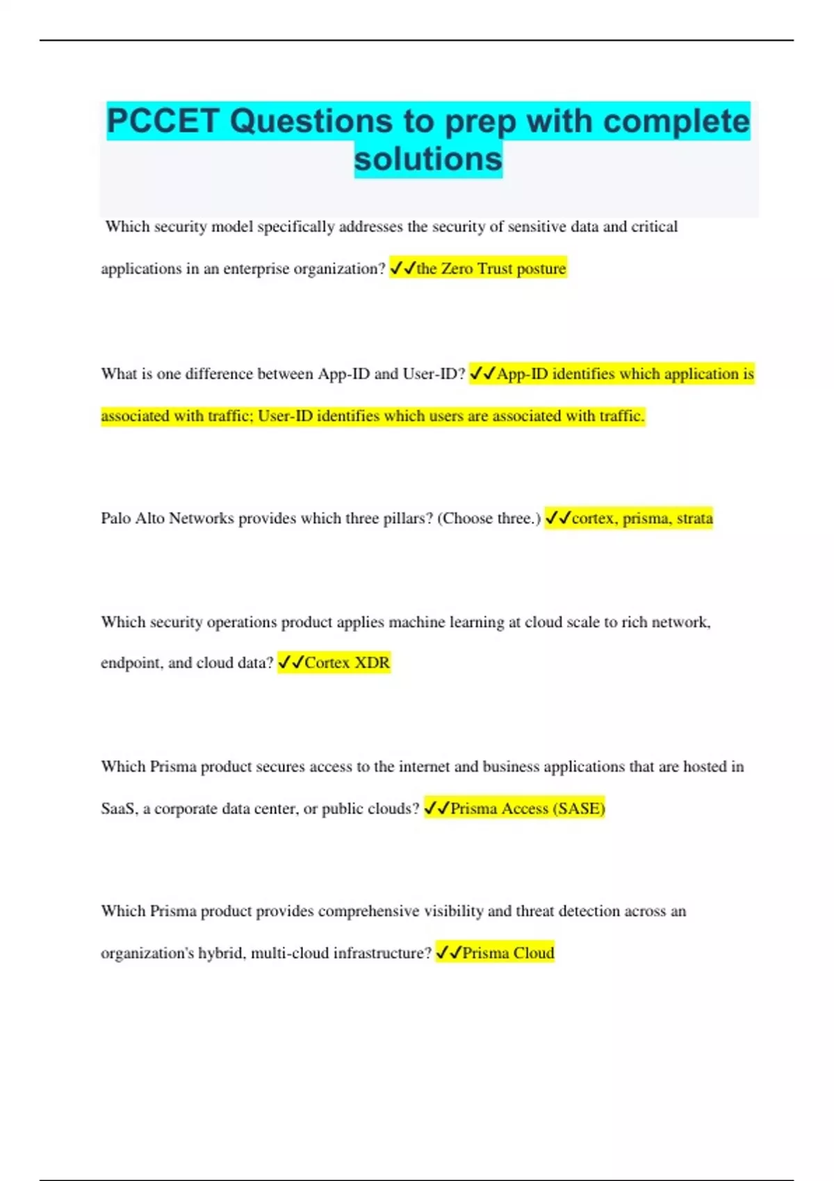 PCCET Questions to prep with complete solutions