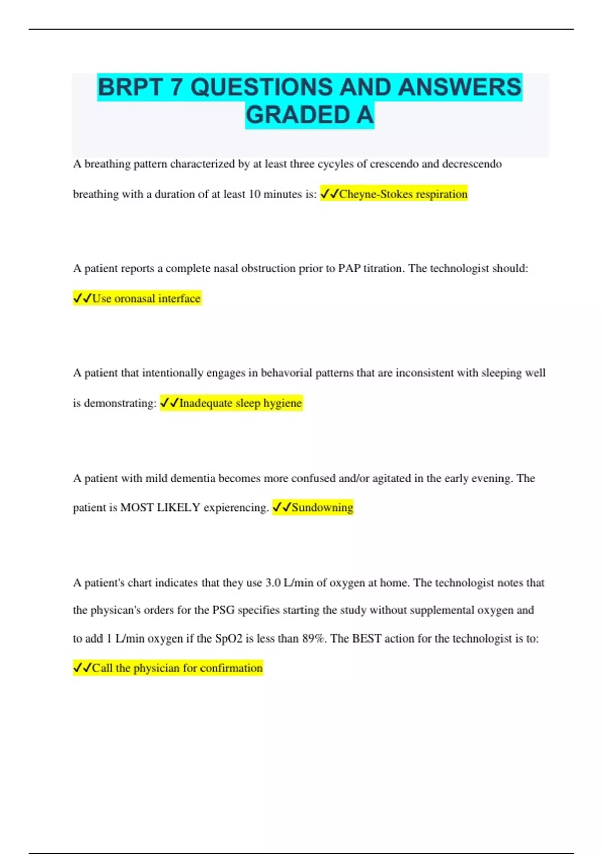 BRPT 7 QUESTIONS AND ANSWERS GRADED A