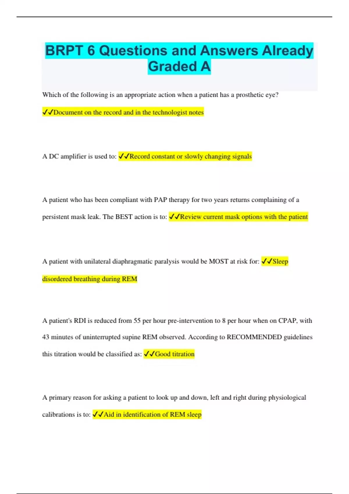 BRPT 6 Questions and Answers Already Graded A