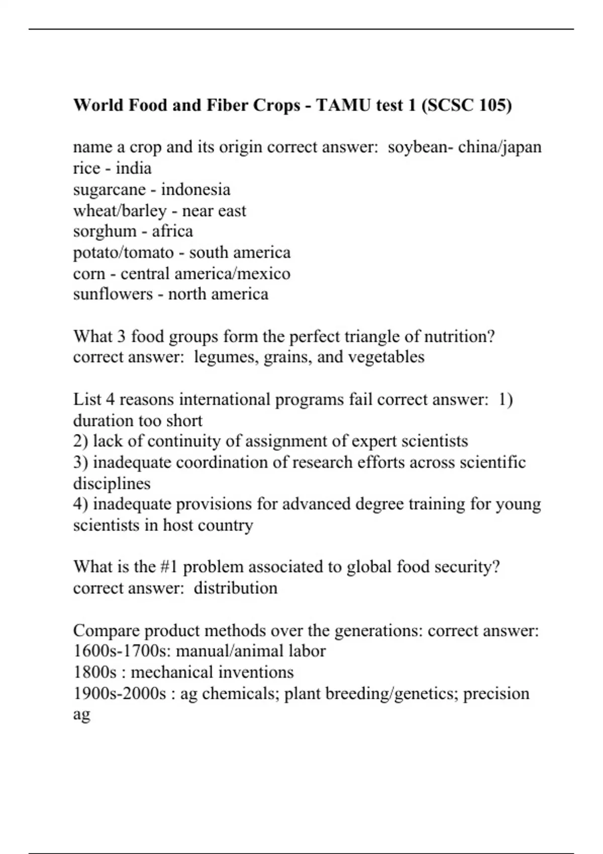 World Food and Fiber Crops - TAMU test 1 (SCSC 105)