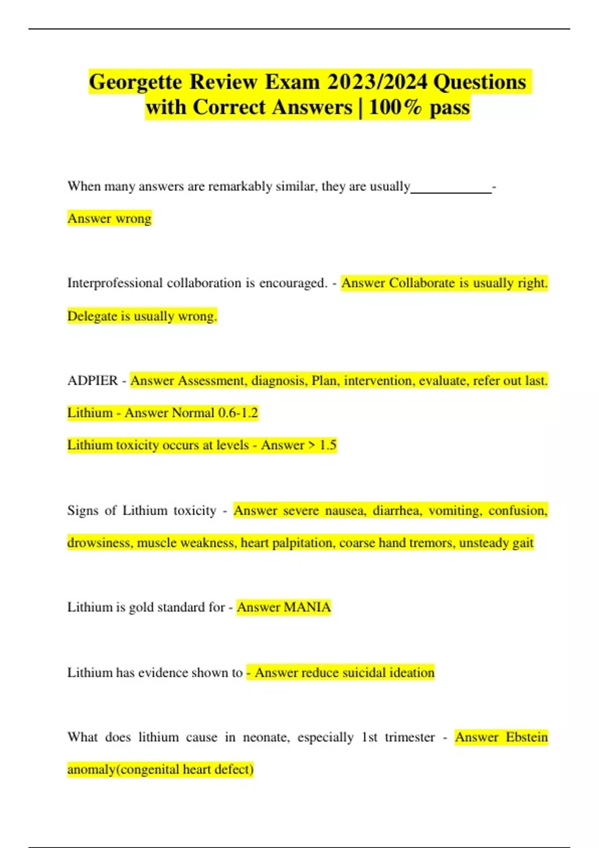Georgette Review Exam 2023/2024 Questions with Correct Answers | 100% pass