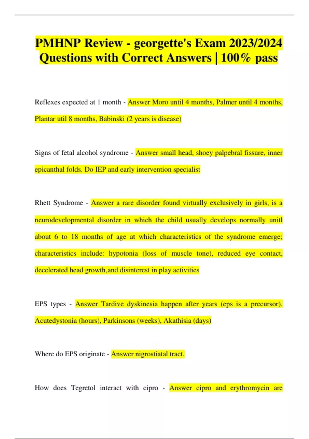 PMHNP Review - georgette's Exam 2023/2024 Questions with Correct Answers | 100% pass
