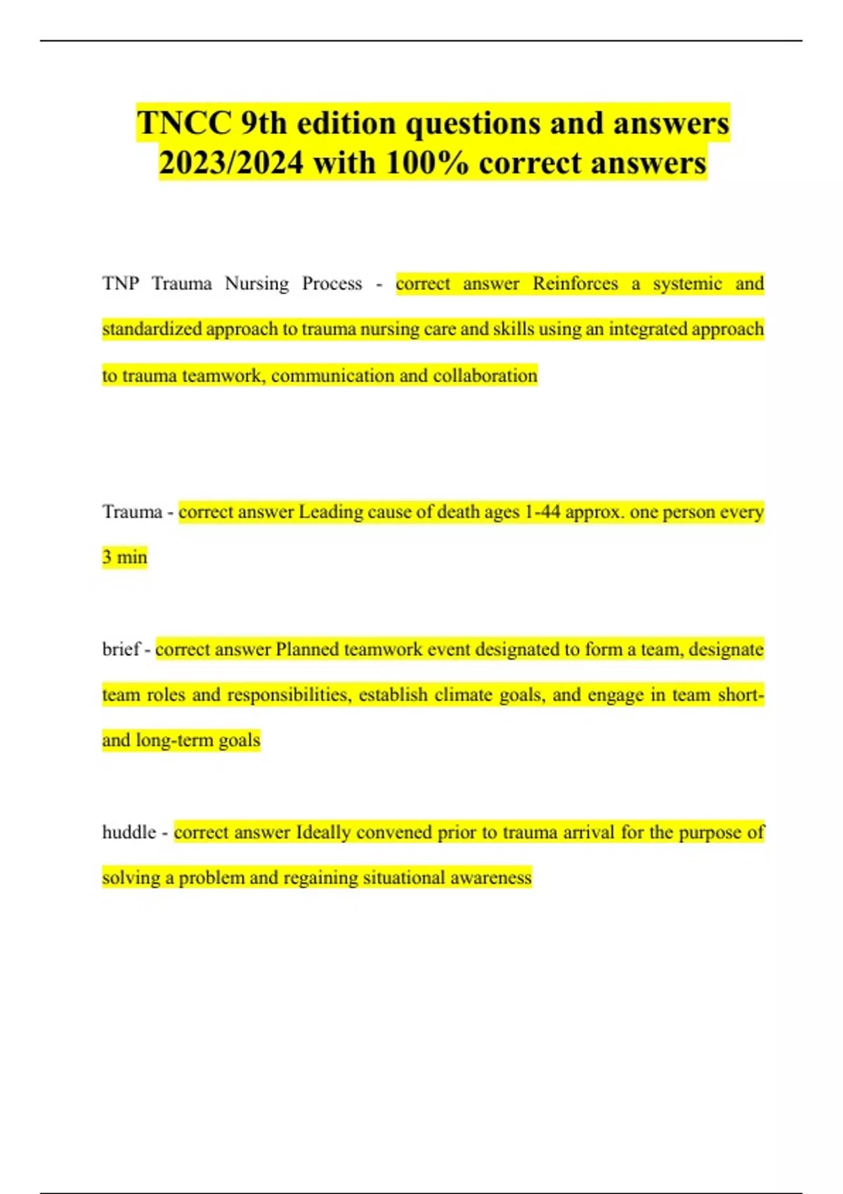 TNCC 9th edition questions and answers 2023/2024 with 100% correct answers