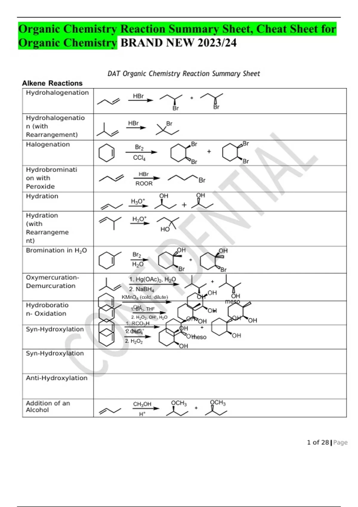 Organic Chemistry Reaction Summary Sheet, Cheat Sheet for Organic Chemistry BRAND NEW 2023/24Organic Chemistry Reaction Summary Sheet, Cheat Sheet for Organic Chemistry BRAND NEW 2023/24Organic Chemistry Reaction Summary Sheet, Cheat Sheet for Organic Chemistry BRAND NEW 2023/24