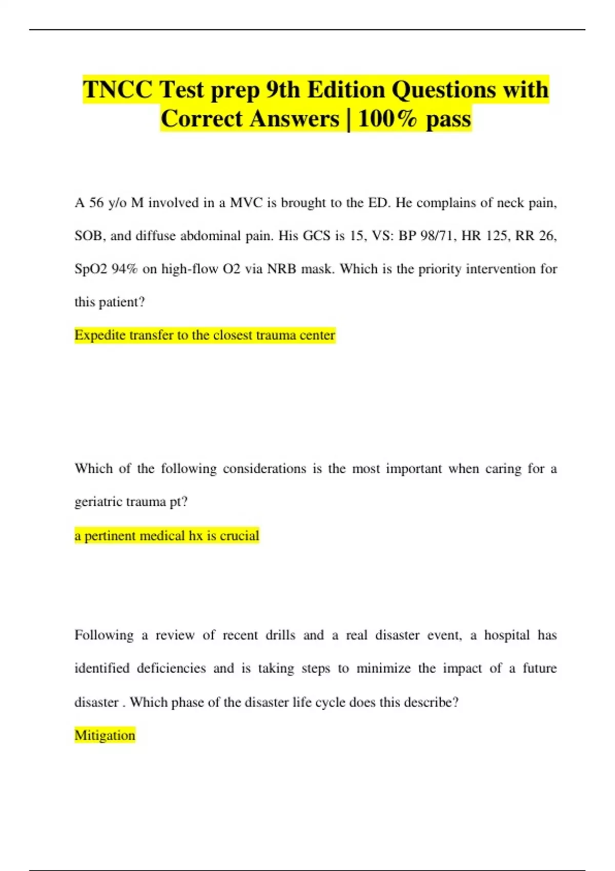 TNCC Test prep 9th Edition Questions with Correct Answers | 100% pass