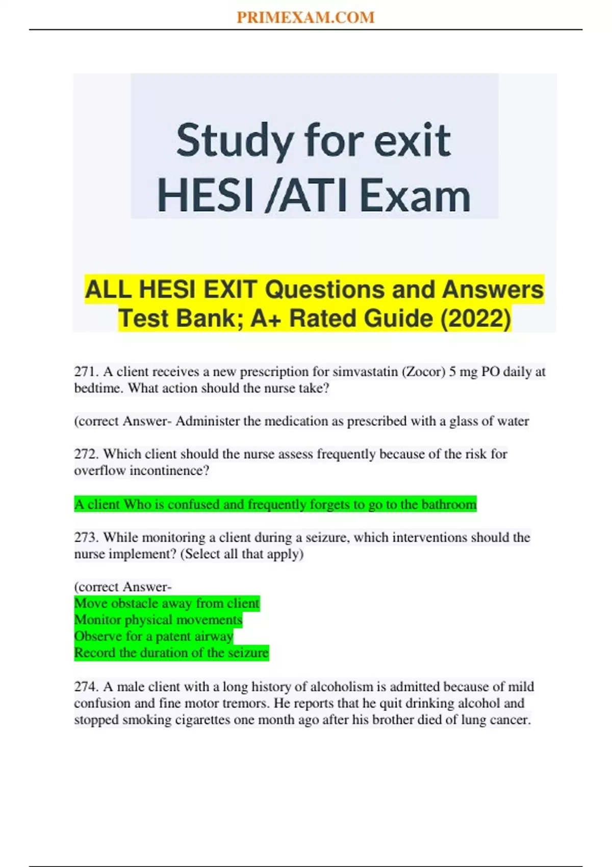 ALL HESI EXIT Questions and Answers Test Bank; A+ Rated Guide (2023) USE (CTRL + F) to search you question (answered) This is the ultimate Distinction exam Help ever !!
