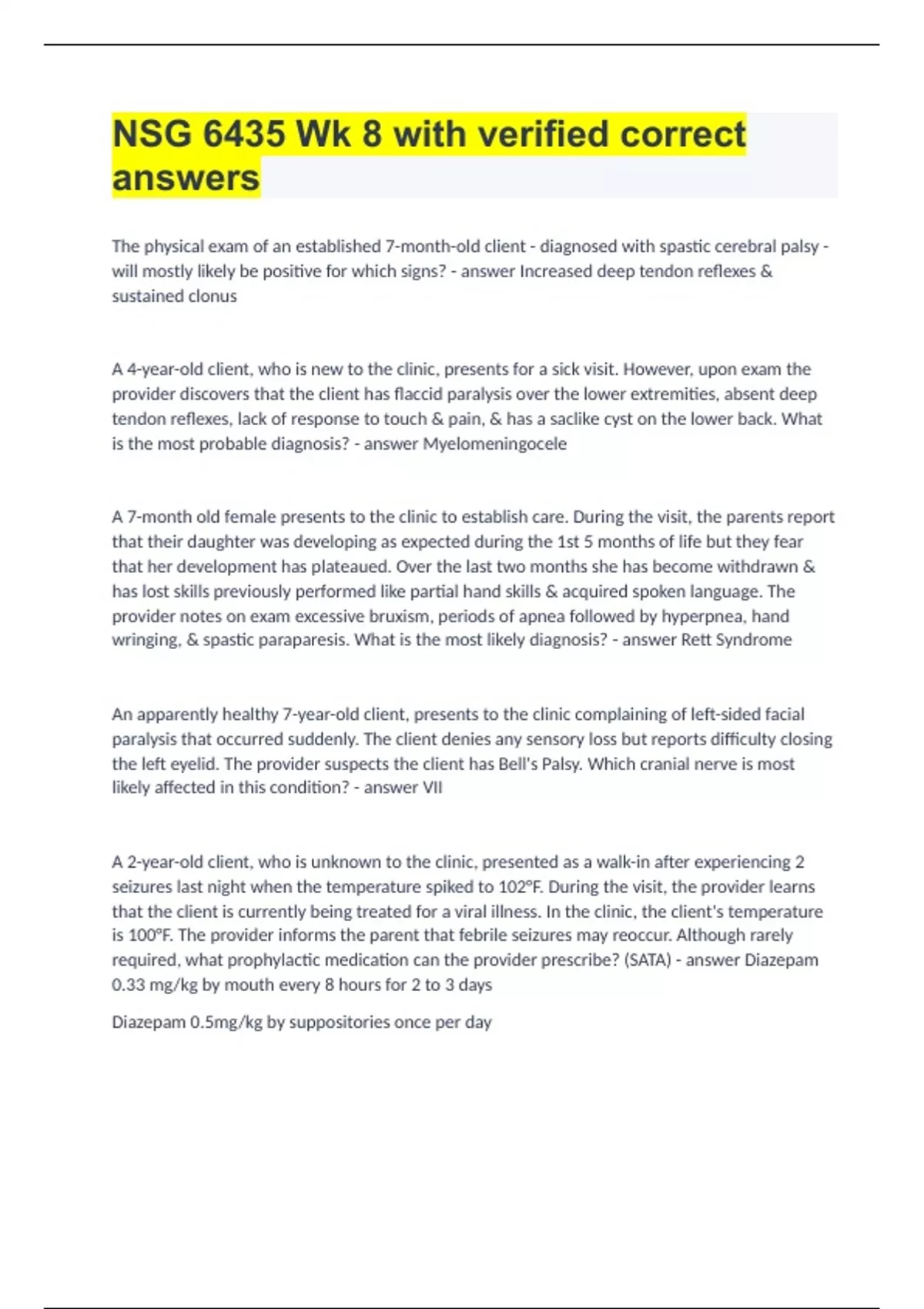 NSG 6435 COMPLETE COMPILATION BUNDLE ALL WITH 100% CORRECT ANSWERS VERIFIED FOR ACCURACY