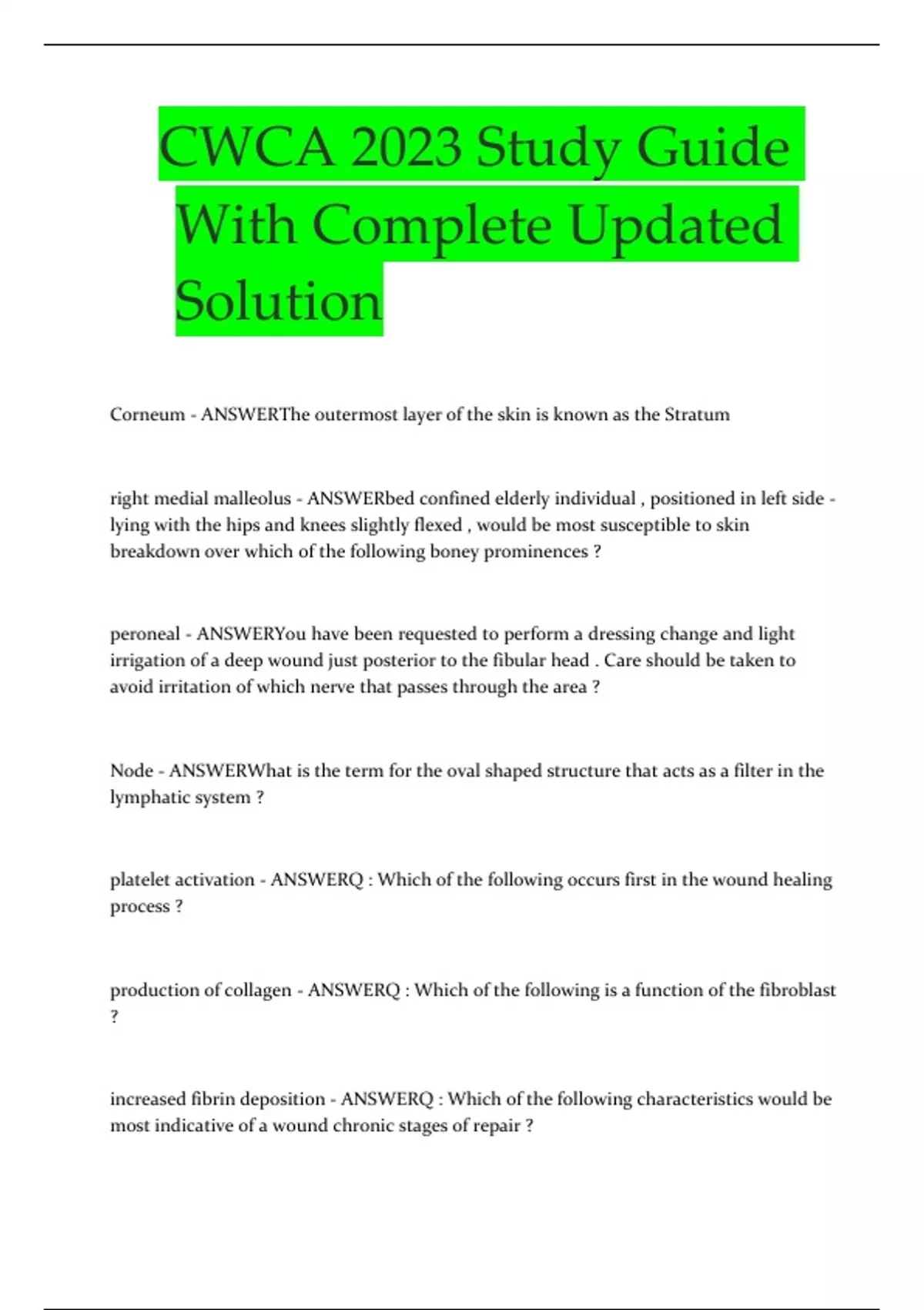 CWCA 2023 Study Guide With Complete Updated Solution