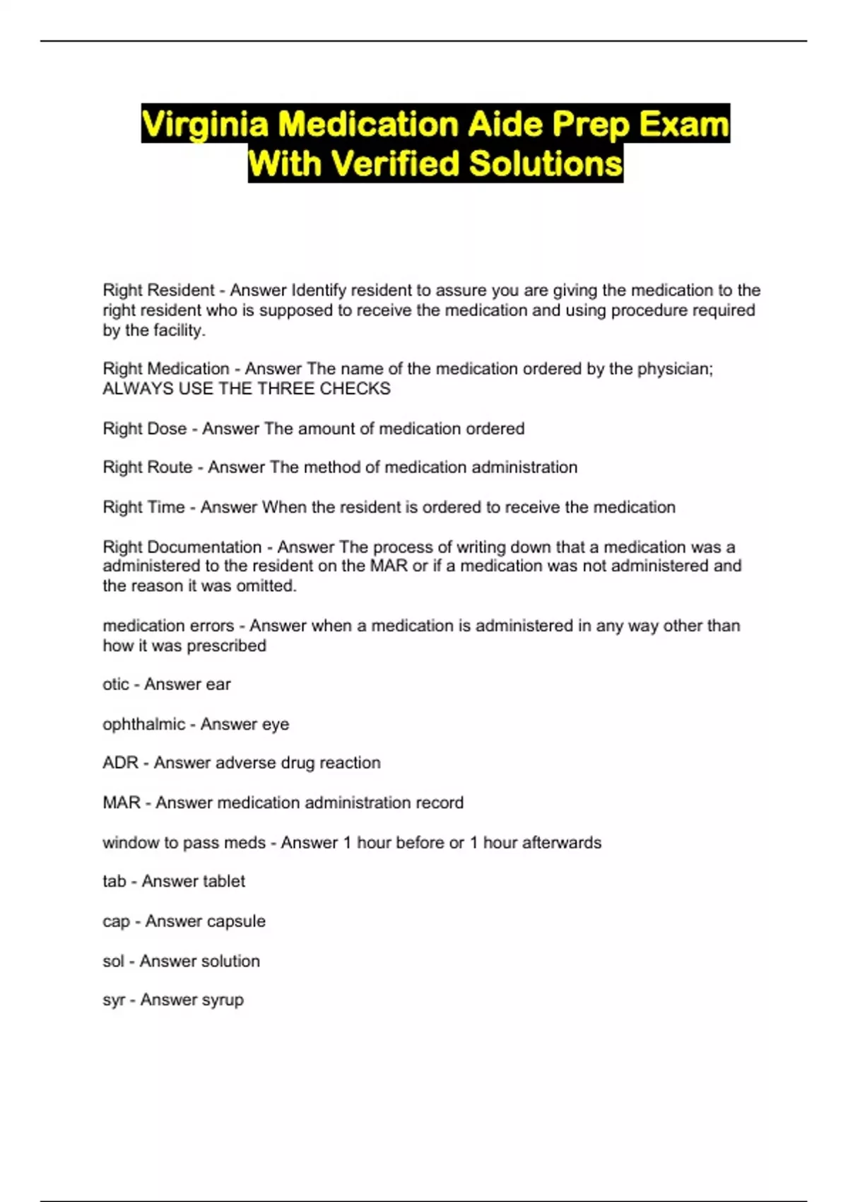 Virginia Medication Aide Prep Exam With Verified Solutions...