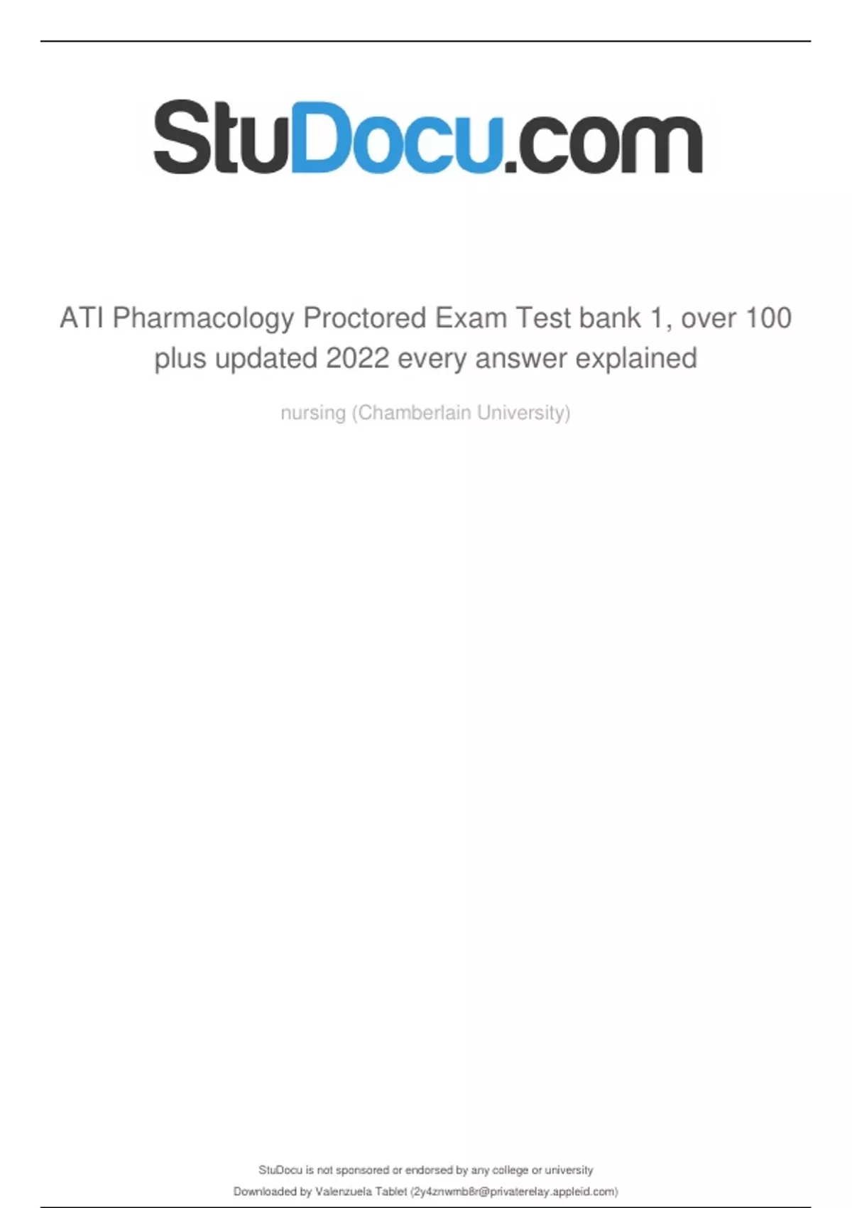 ATI Pharmacology Proctored Exam Test bank 1, over 100 plus updated 2023 every answer explained