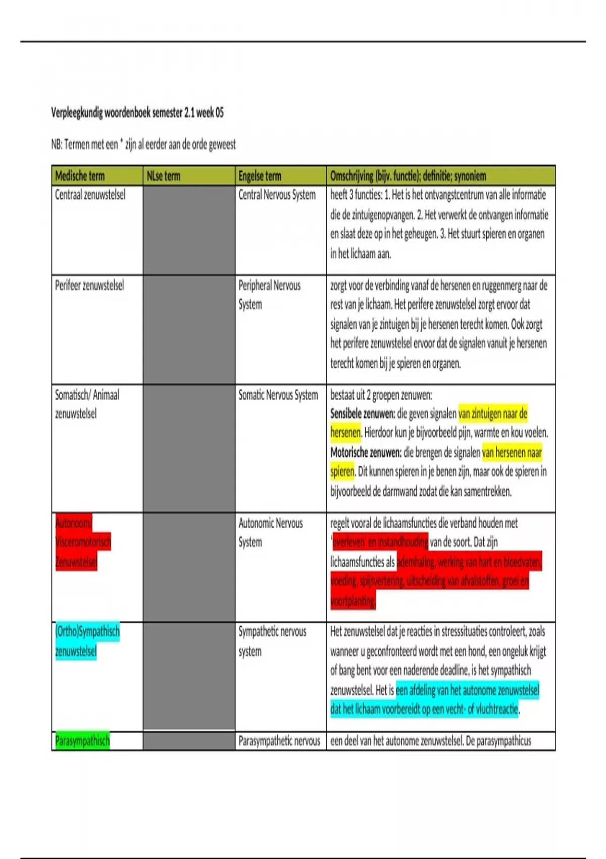 verpleegkundige woordenboek opbouw zenuwstelsel week 5 semester 1 jaar 2