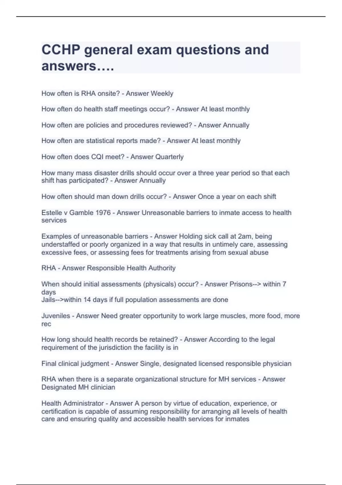 NCCHC CCHP Exam Questions And Answers Package Latest Update 2023