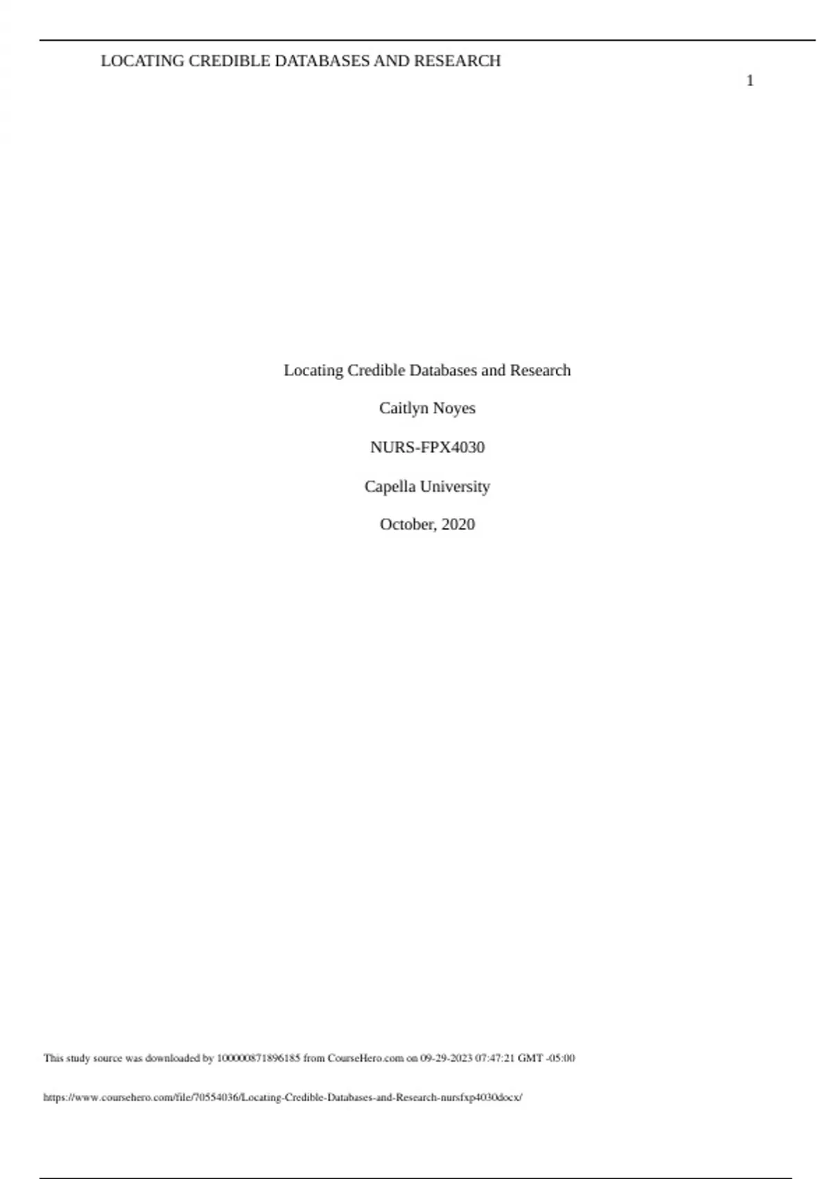 Locating Credible Databases and Research Caitlyn Noyes NURS-FPX4030 Capella University