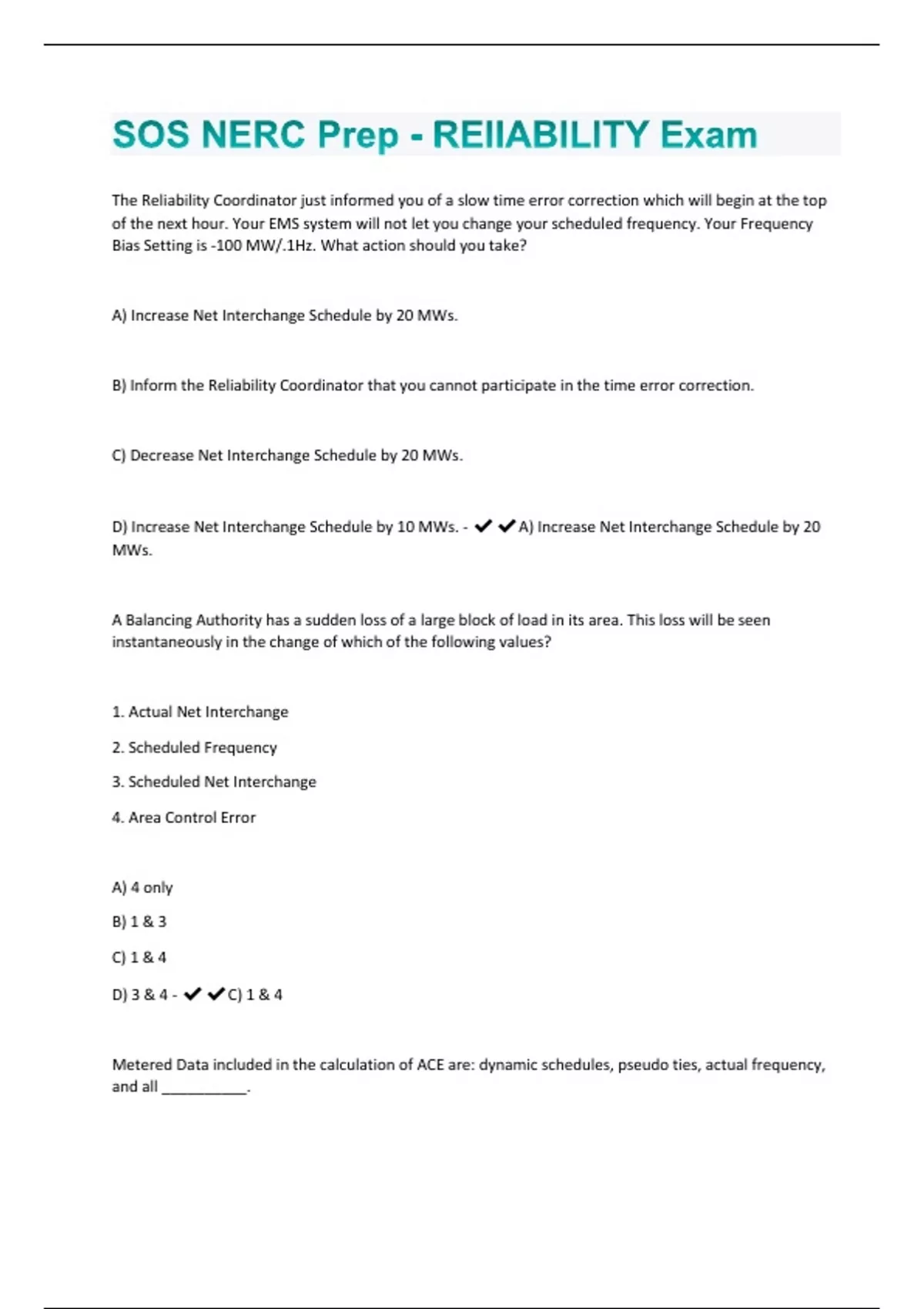 SOS NERC Prep - RElIABILITY Exam | 200 Questions and Answers(A+ Solution guide)