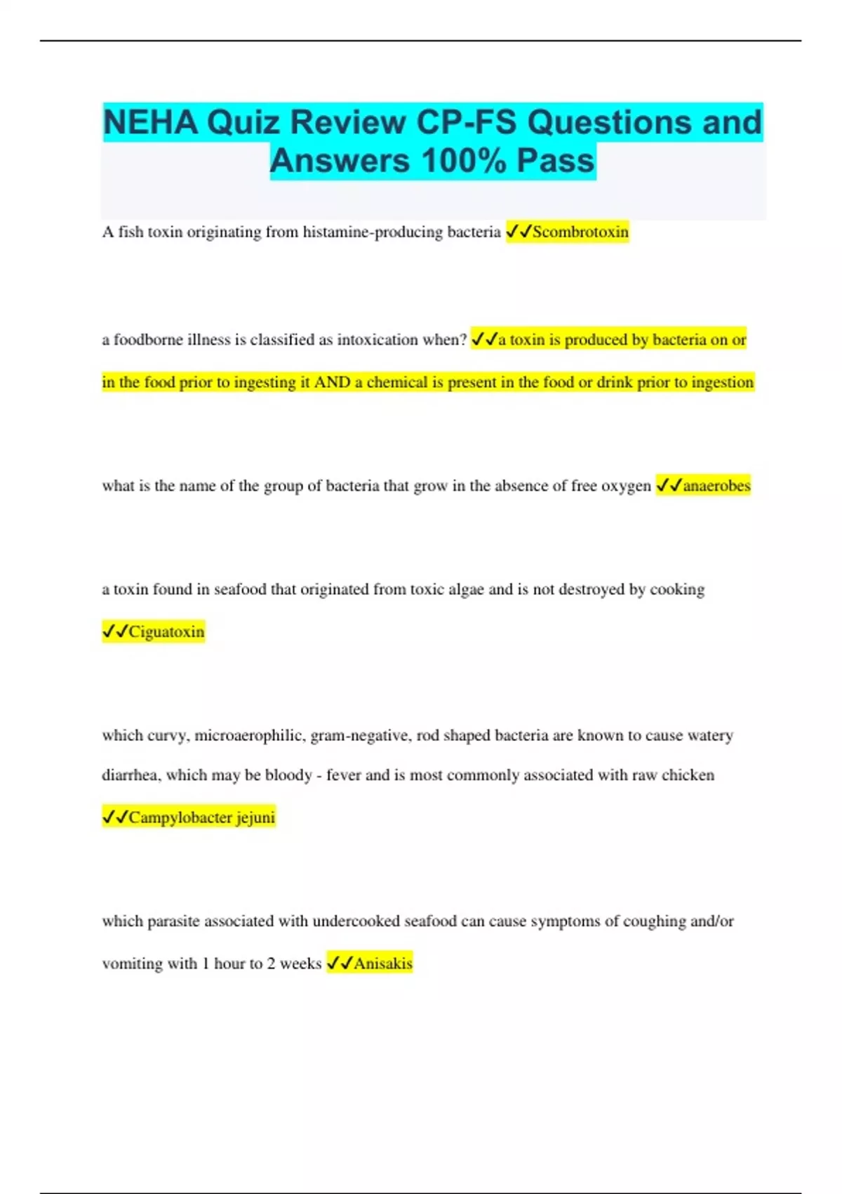 NEHA Quiz Review CP-FS Questions and Answers 100% Pass