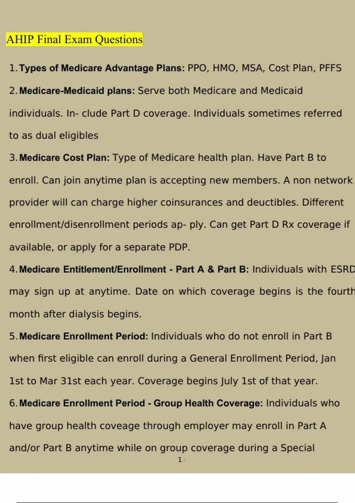 AHIP Final Exam Questions Newest Questions and Answers (2023 / 2024) (Verified Answers)